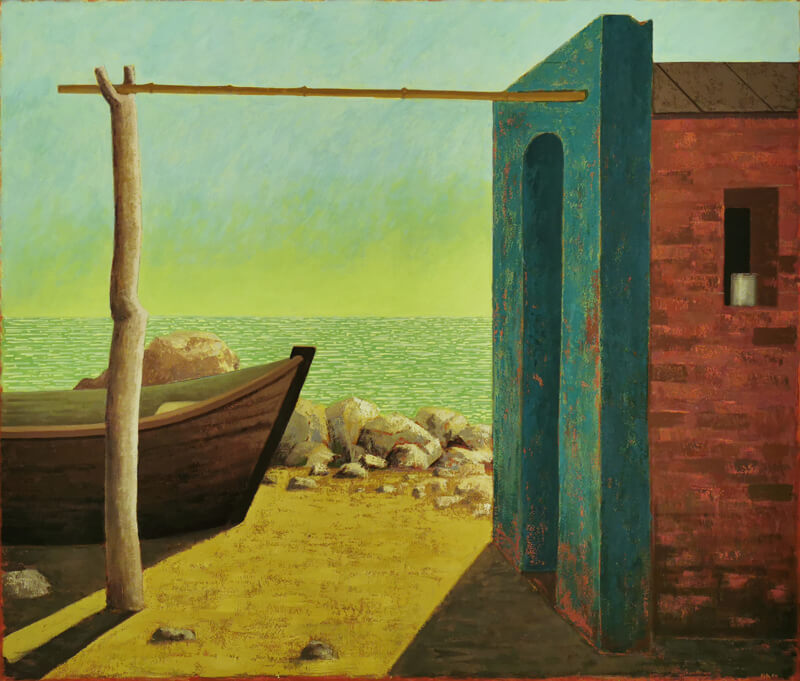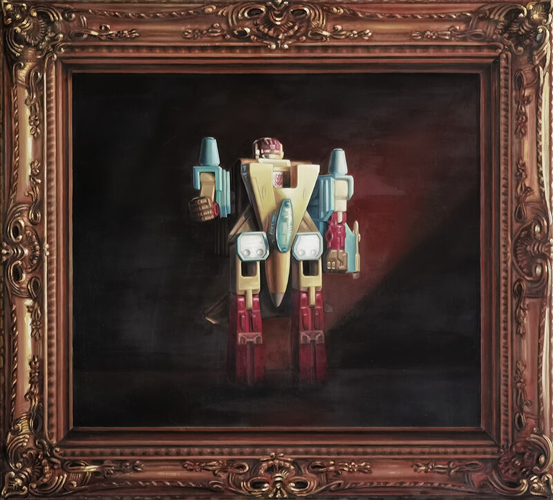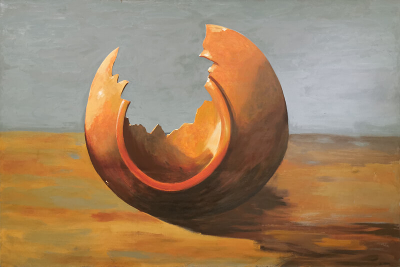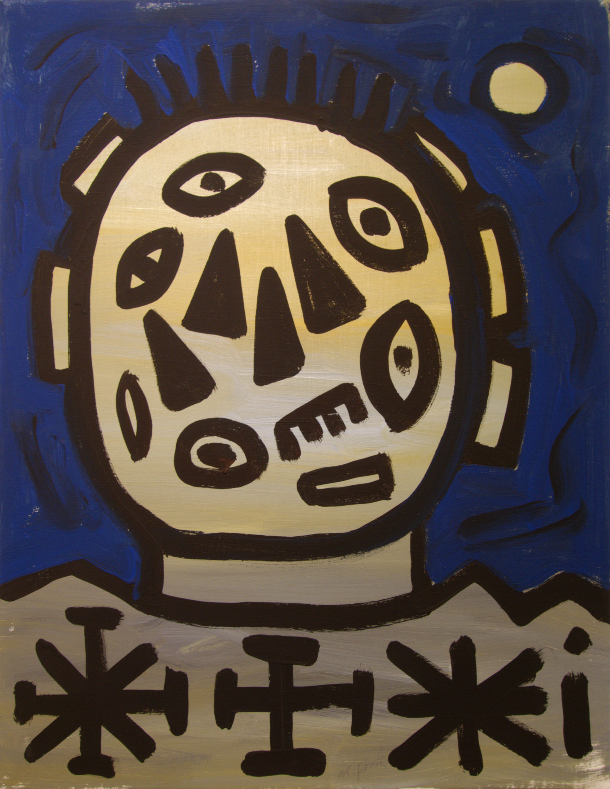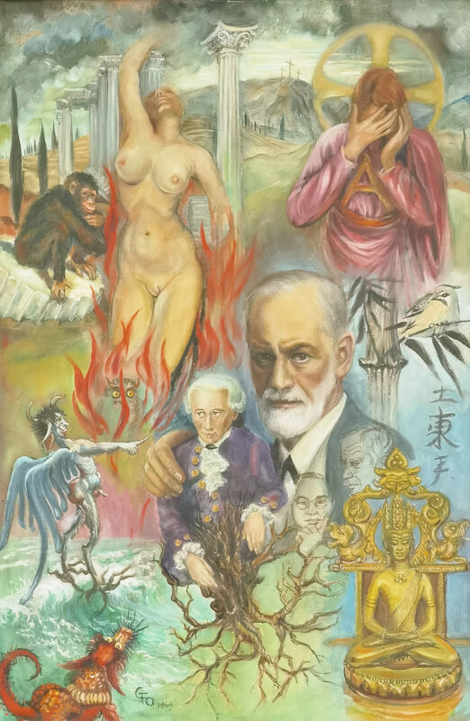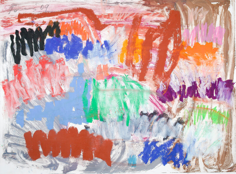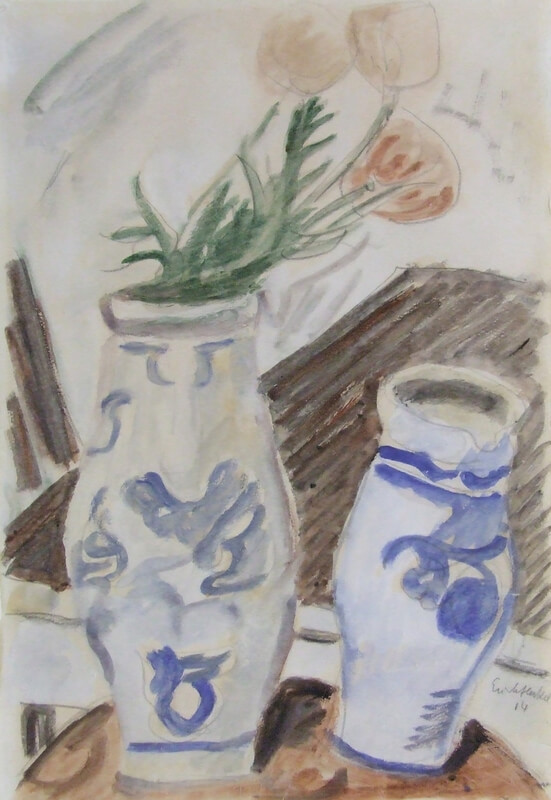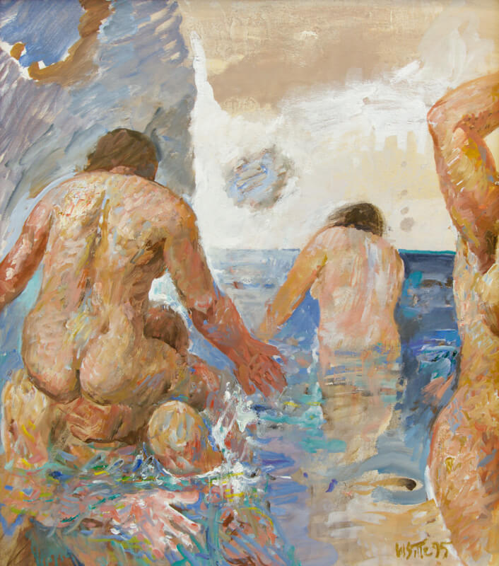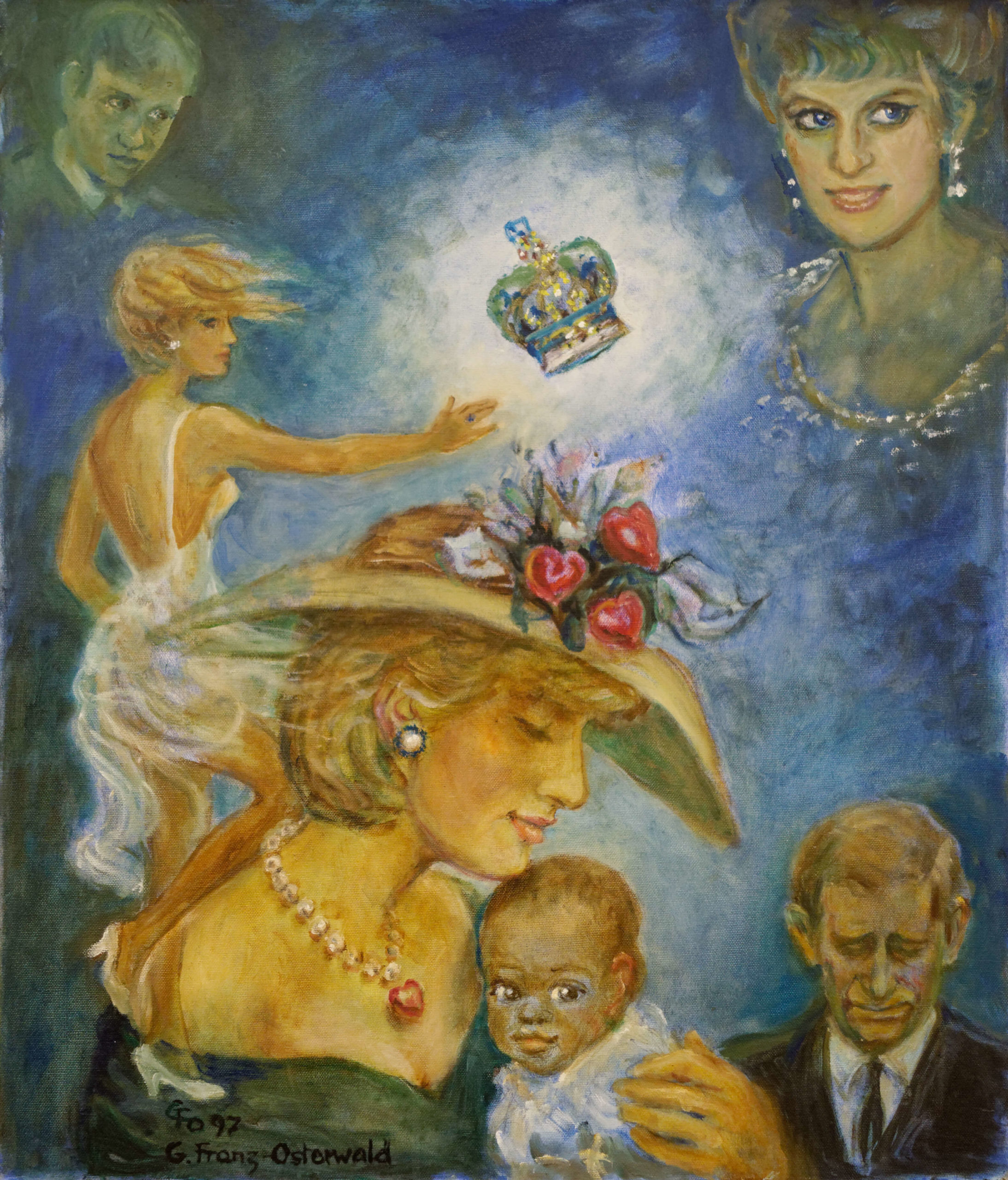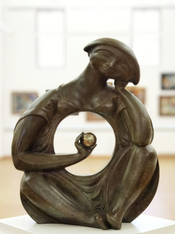 Glasobjekt | Leinwand in Holz mit Schutz aus Plexiglas mit 7 Fischen in glas eingebunden, Leinwand weiß und azur, Glas blau mit Rauch in opal Format: cm