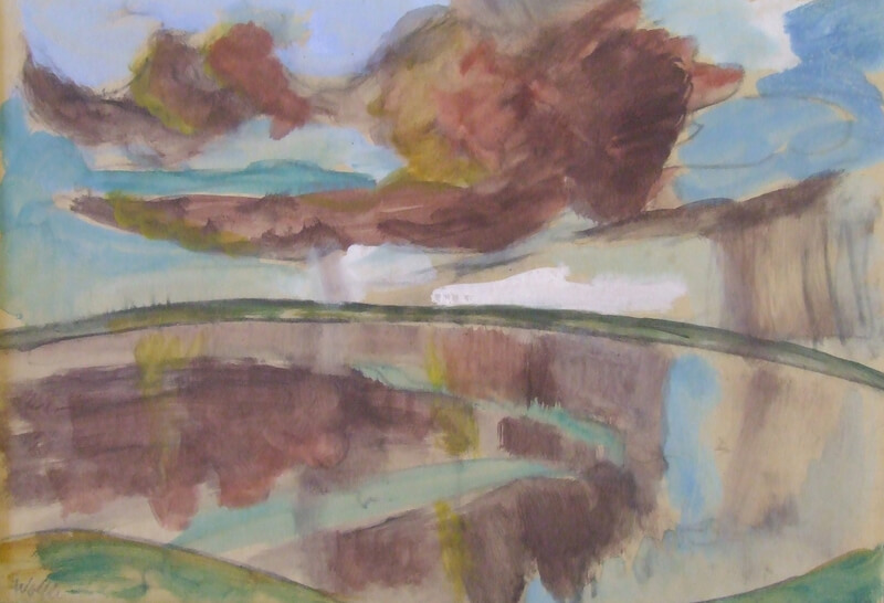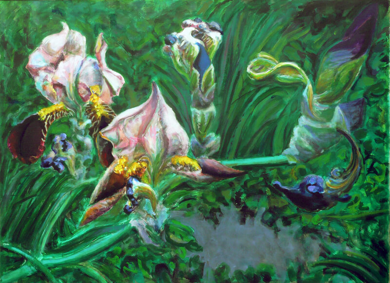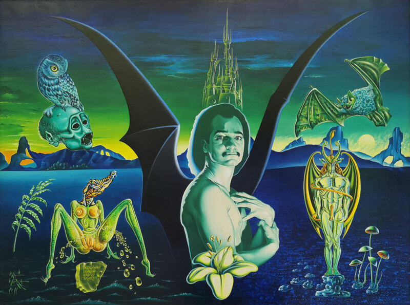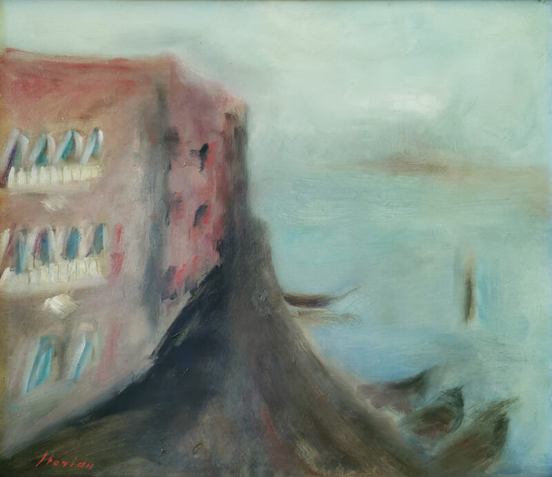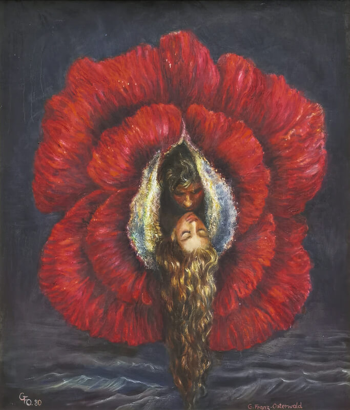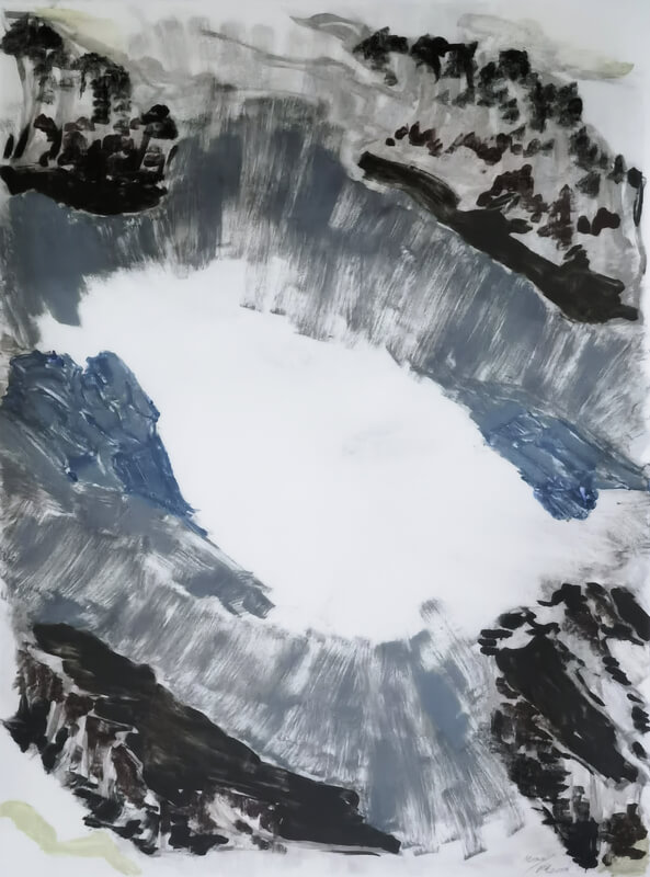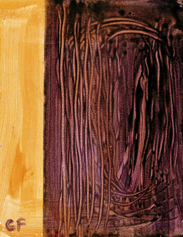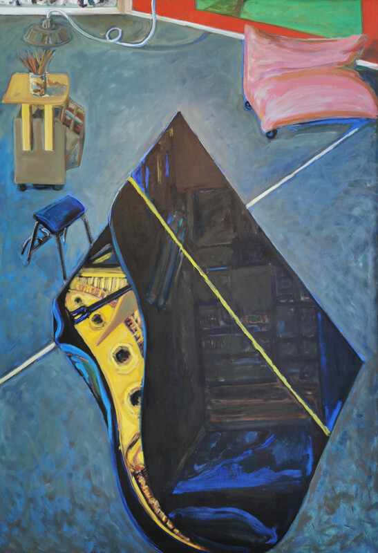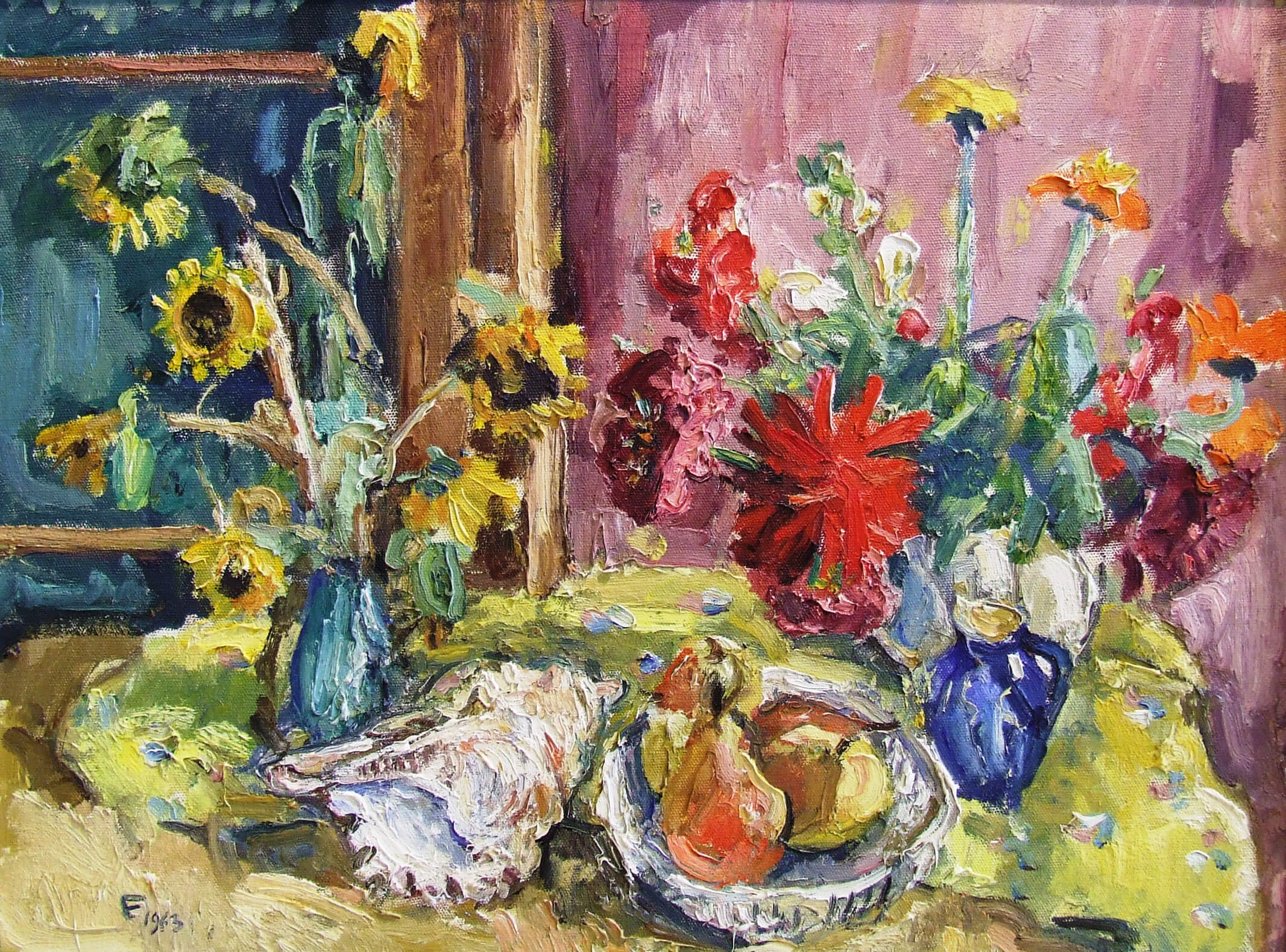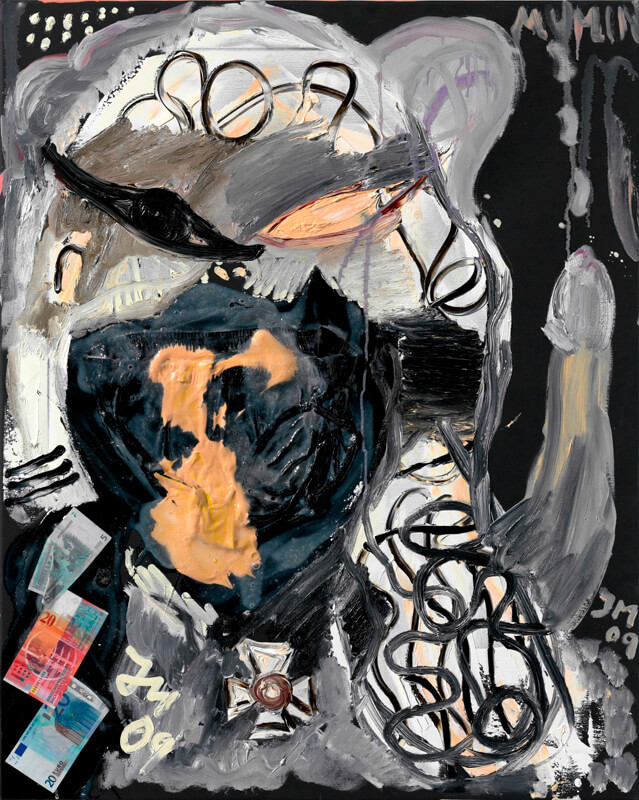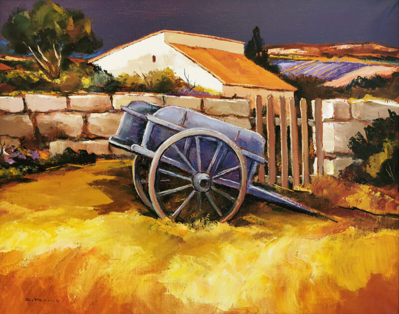 Glasobjekt | Leinwand in Holz mit Schutz aus Plexiglas mit 7 Fischen in glas eingebunden, Leinwand weiß und azur, Glas blau mit Rauch in opal Format: cm