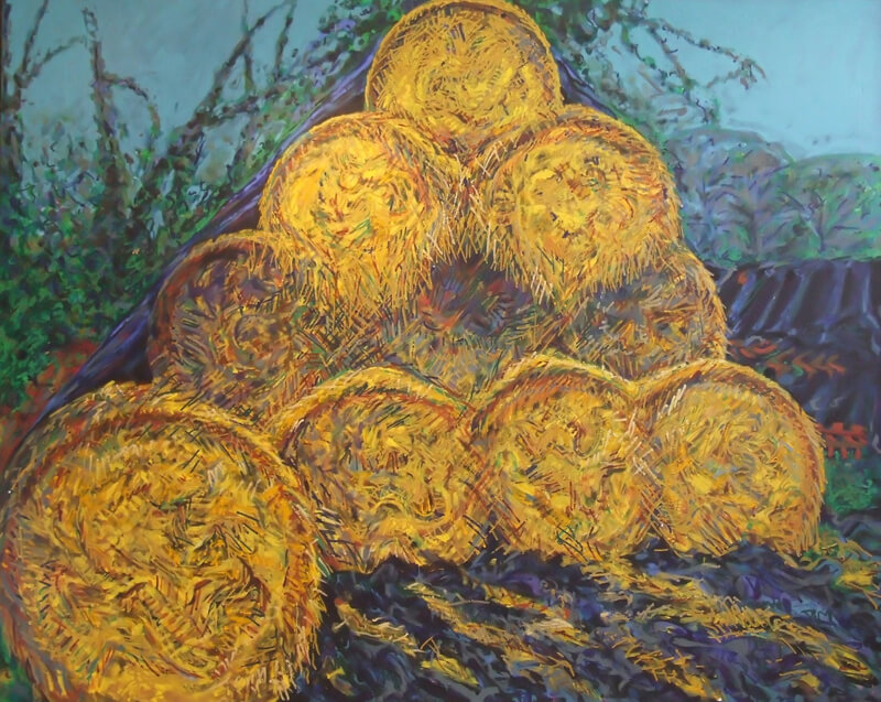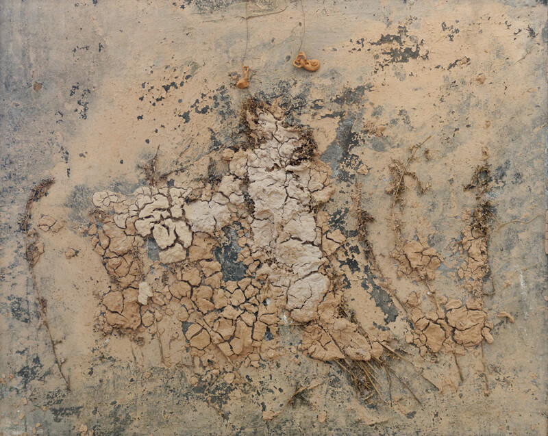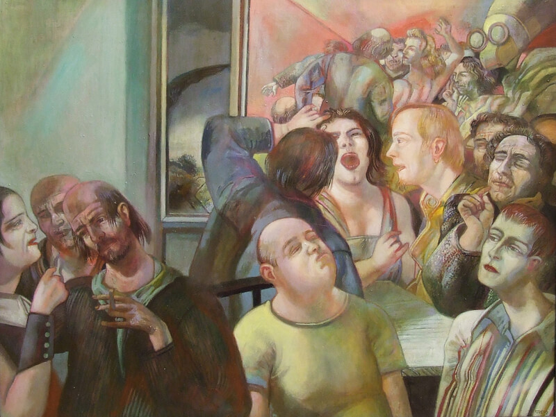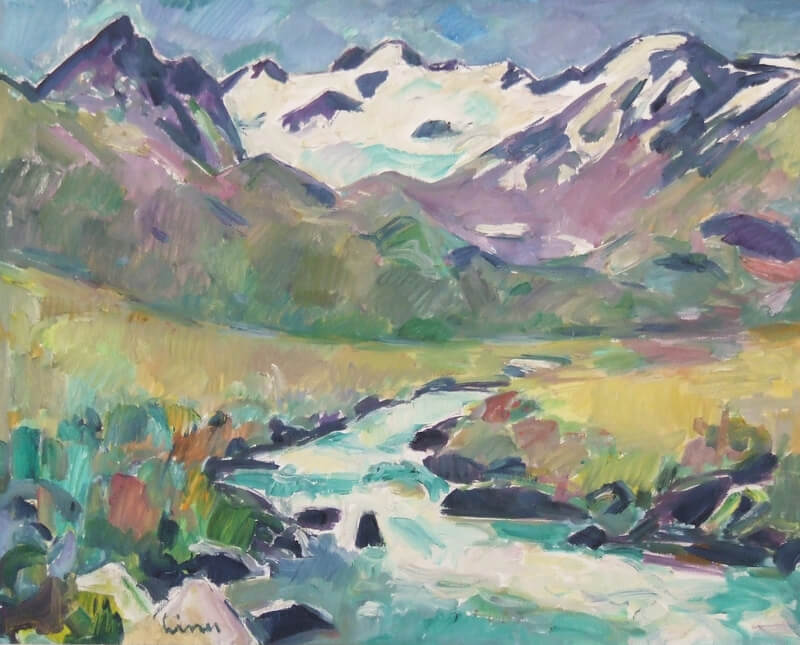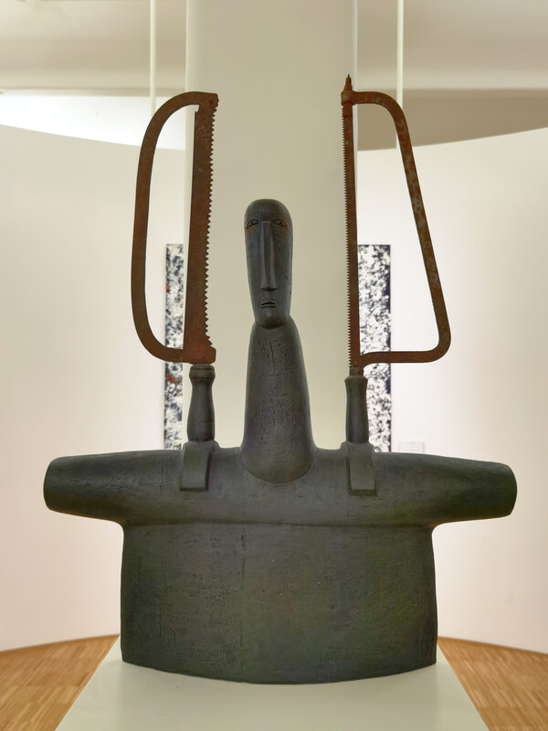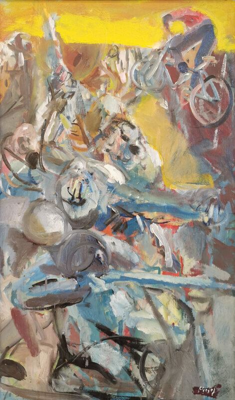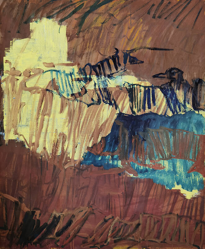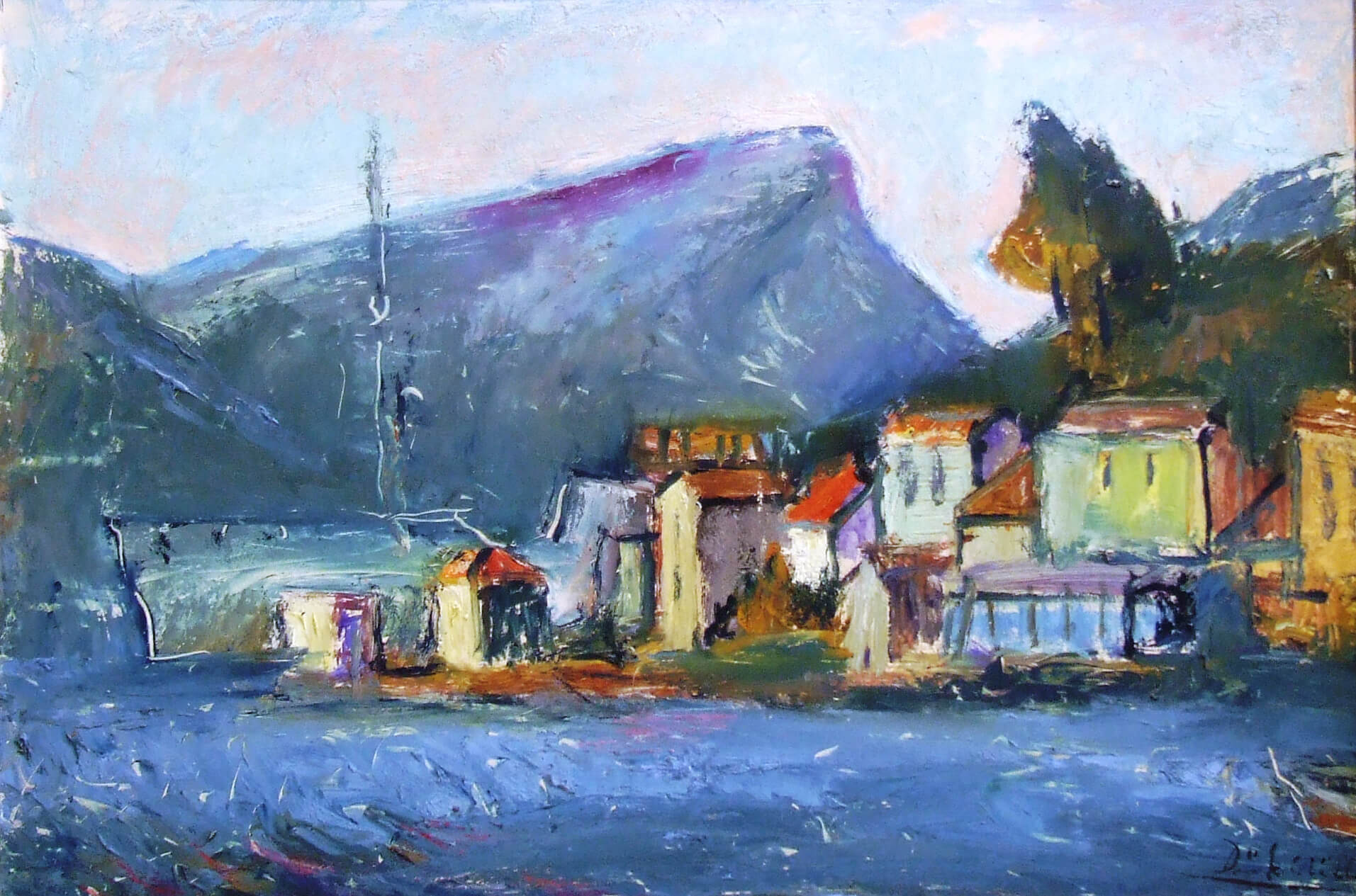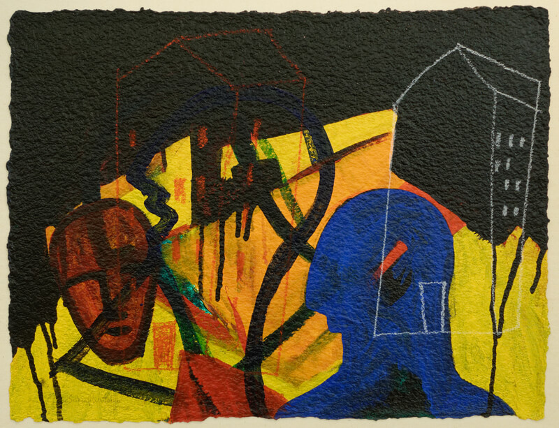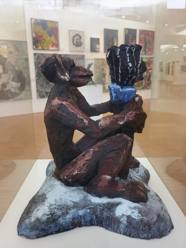 Glasobjekt | Leinwand in Holz mit Schutz aus Plexiglas mit 7 Fischen in glas eingebunden, Leinwand weiß und azur, Glas blau mit Rauch in opal Format: cm