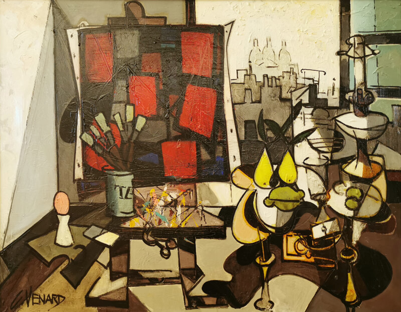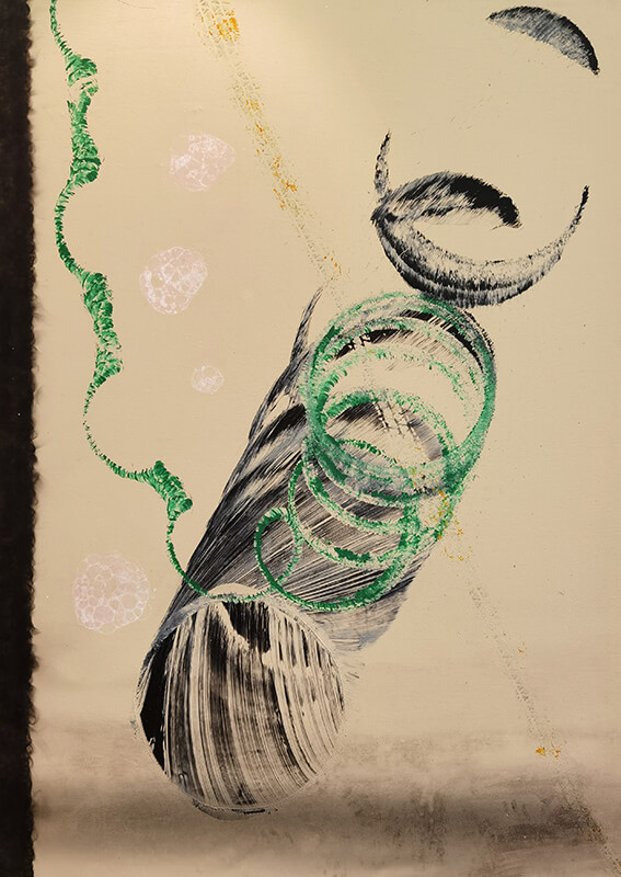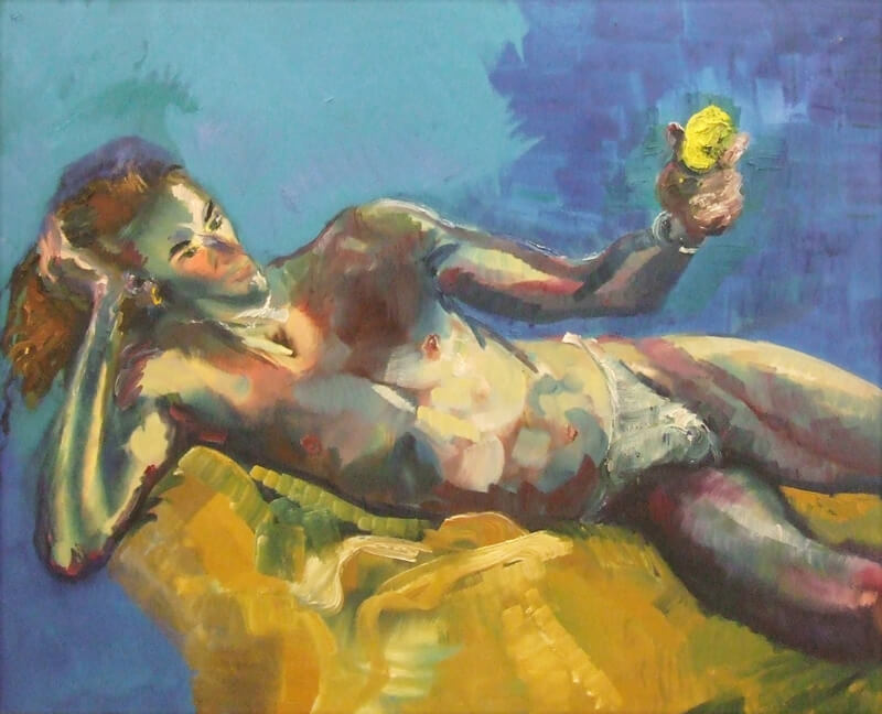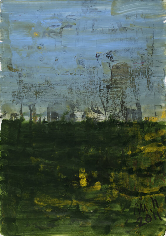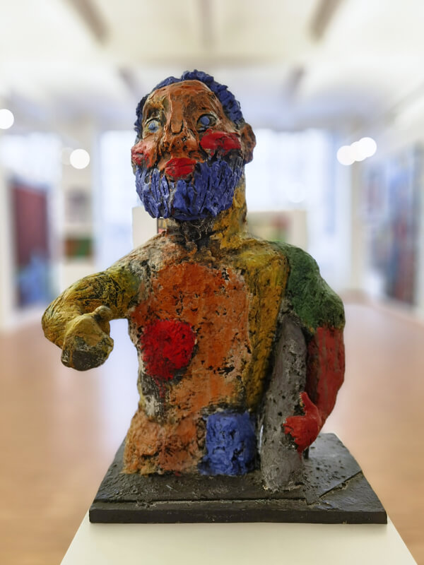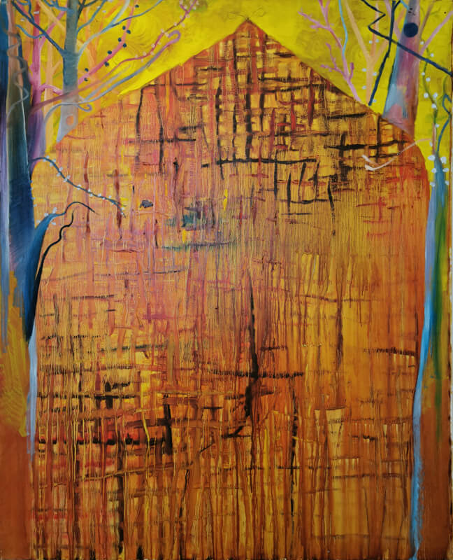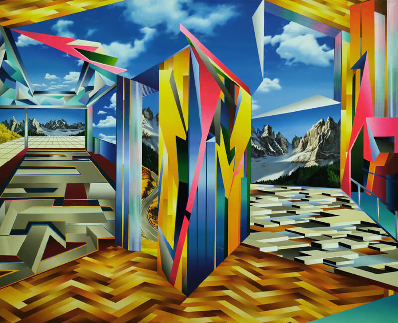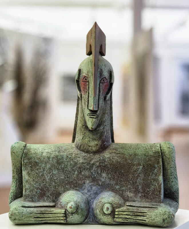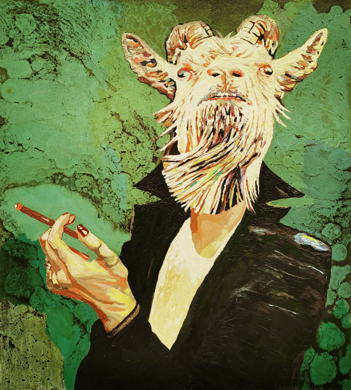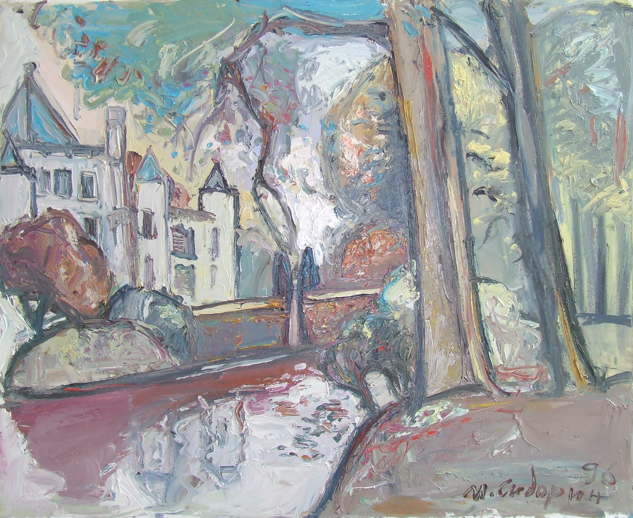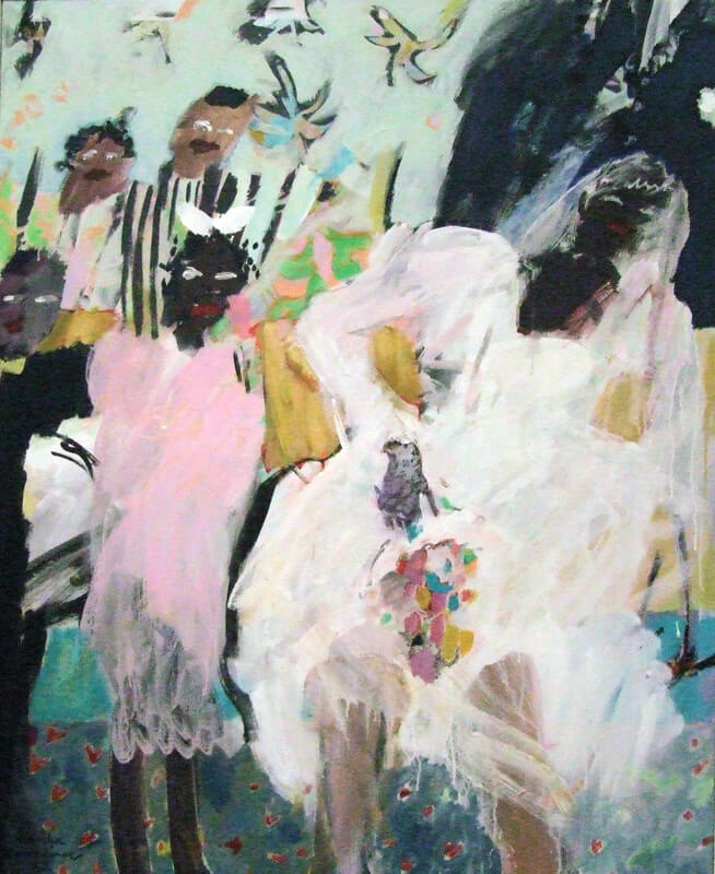 Glasobjekt | Leinwand in Holz mit Schutz aus Plexiglas mit 7 Fischen in glas eingebunden, Leinwand weiß und azur, Glas blau mit Rauch in opal Format: cm