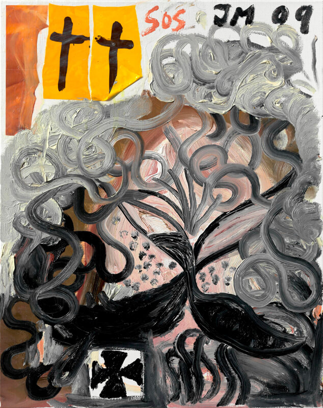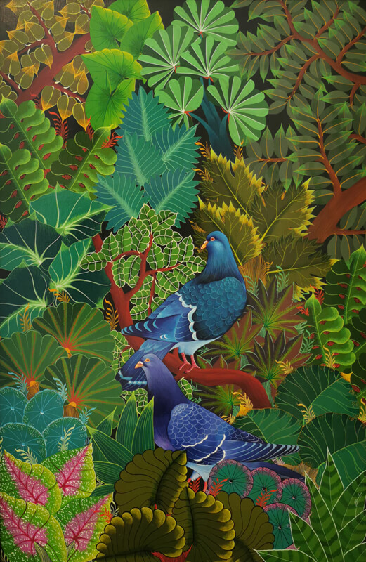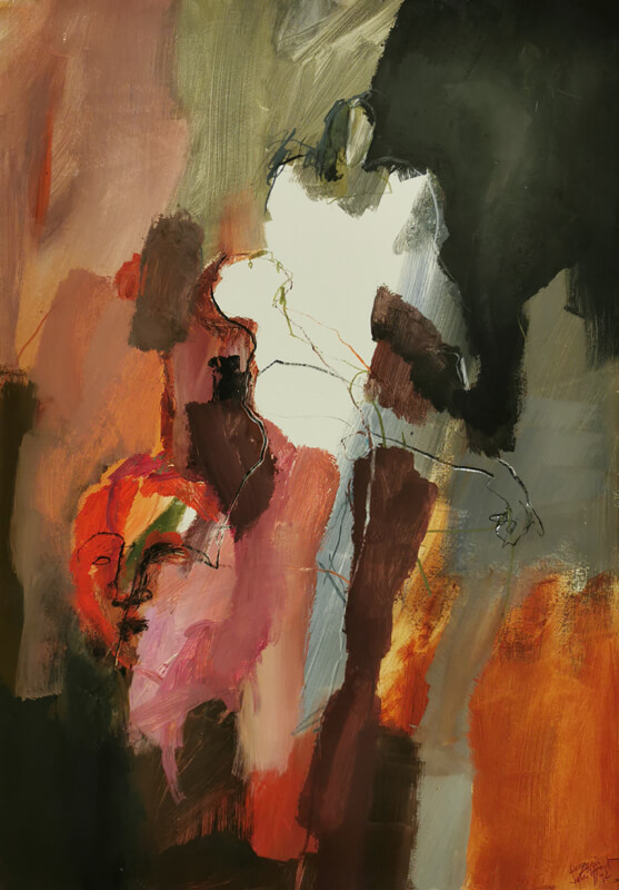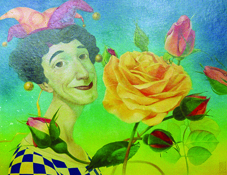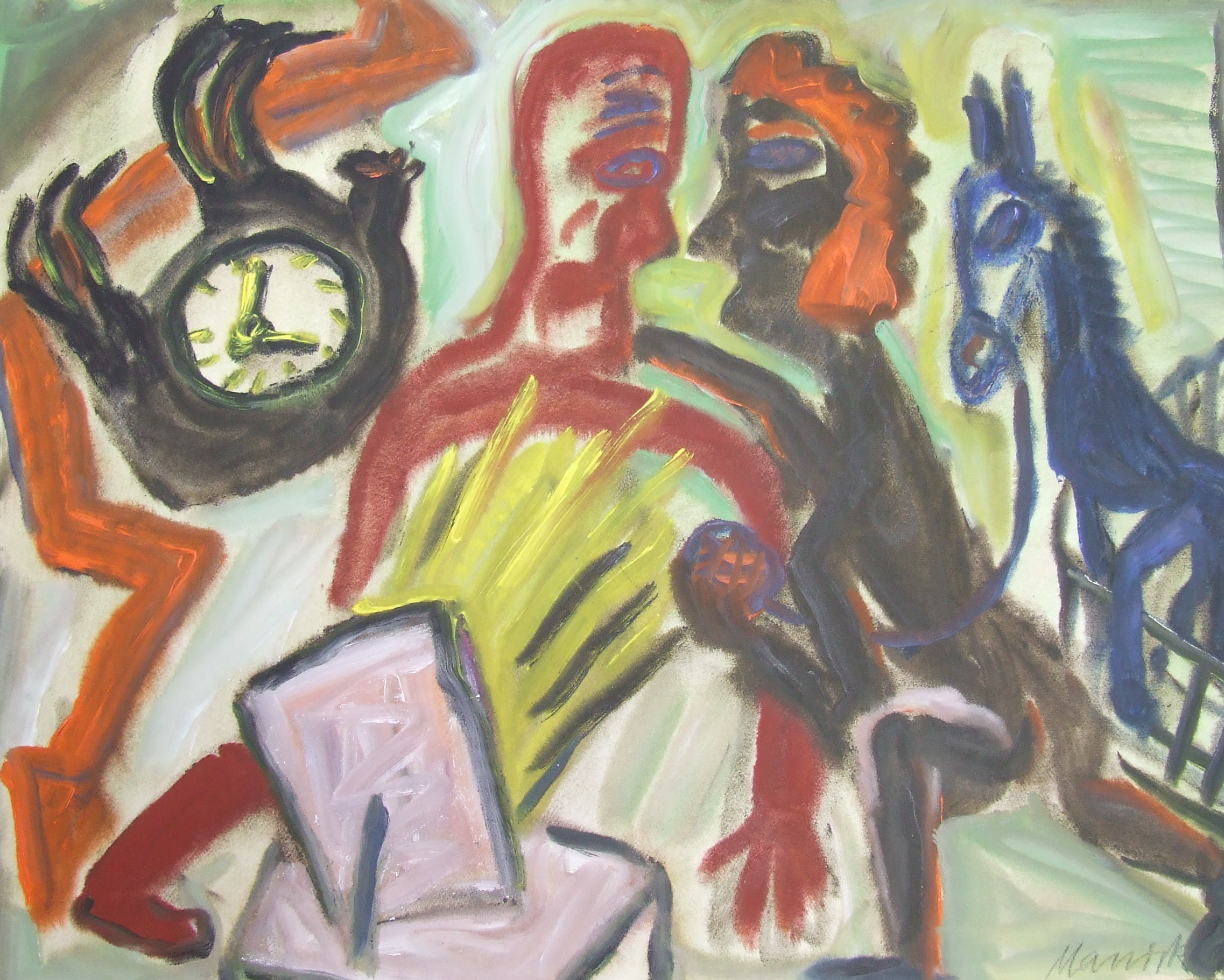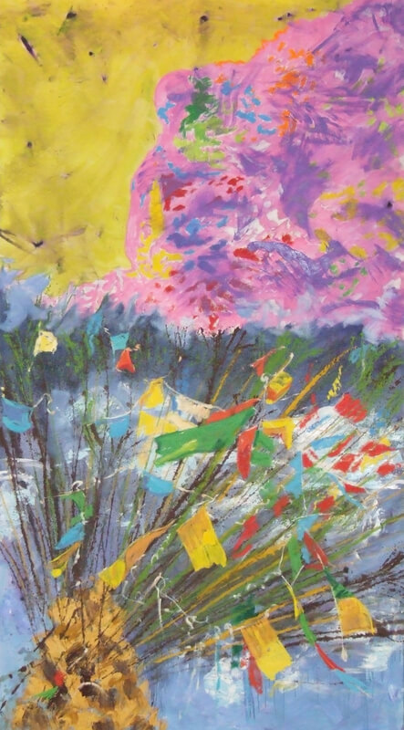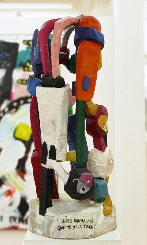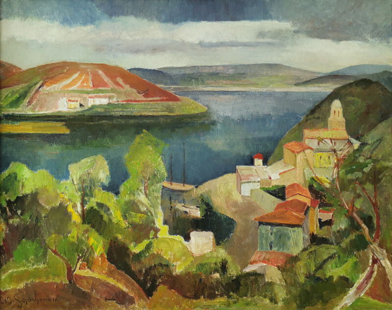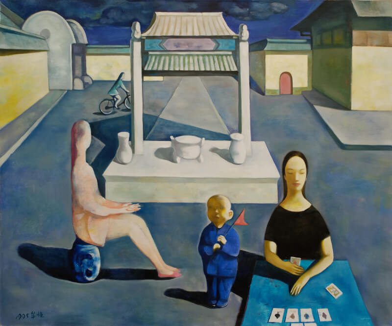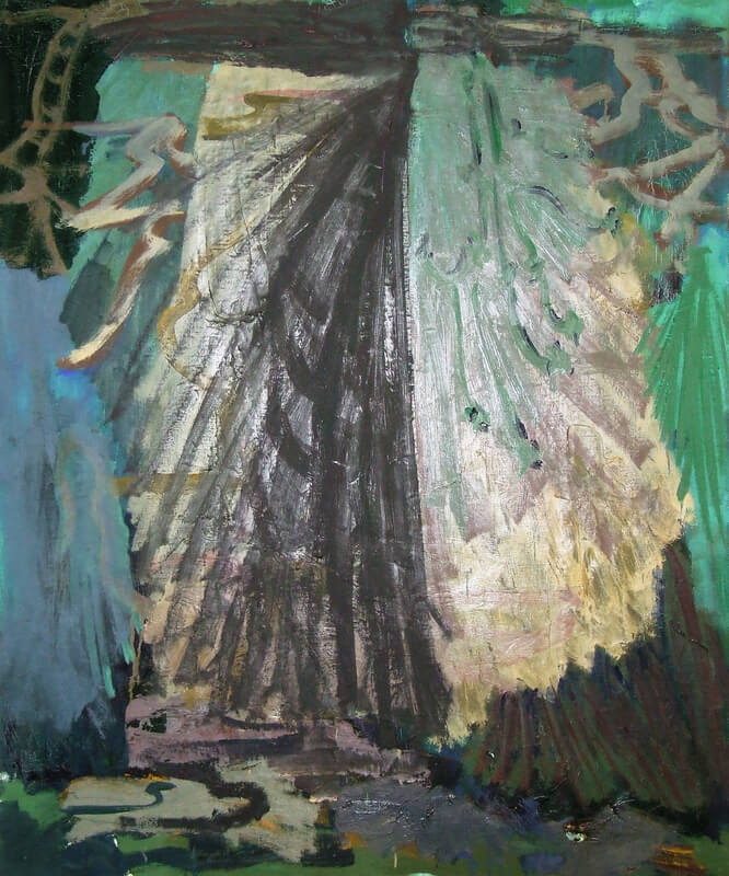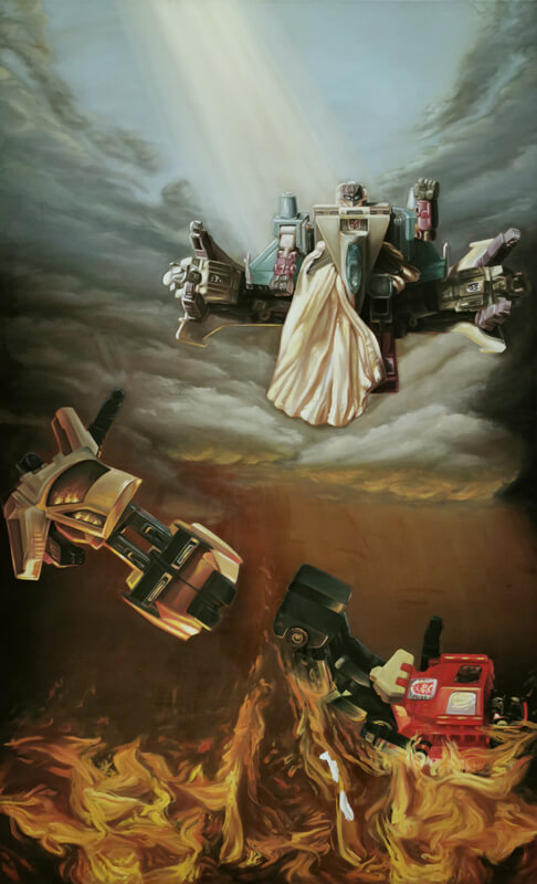 Glasobjekt | Leinwand in Holz mit Schutz aus Plexiglas mit 7 Fischen in glas eingebunden, Leinwand weiß und azur, Glas blau mit Rauch in opal Format: cm