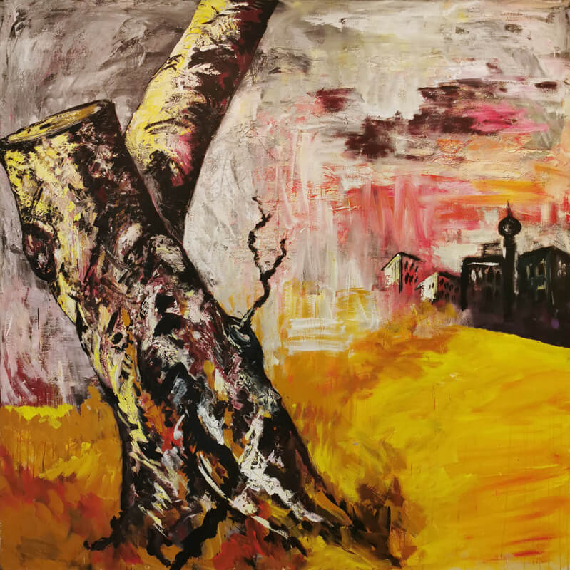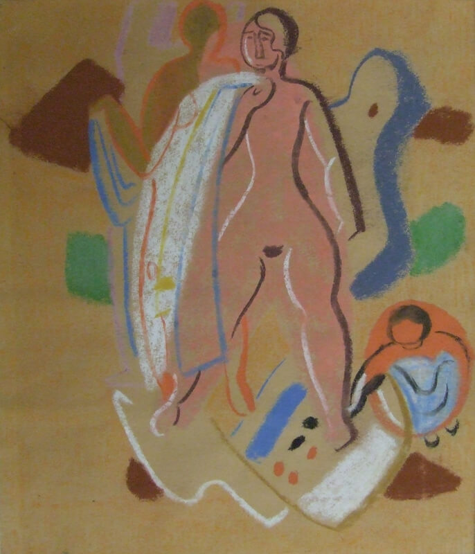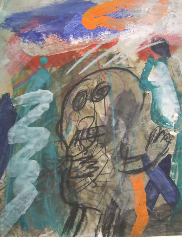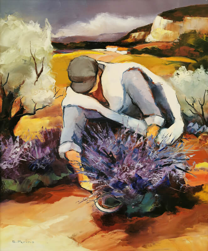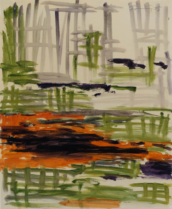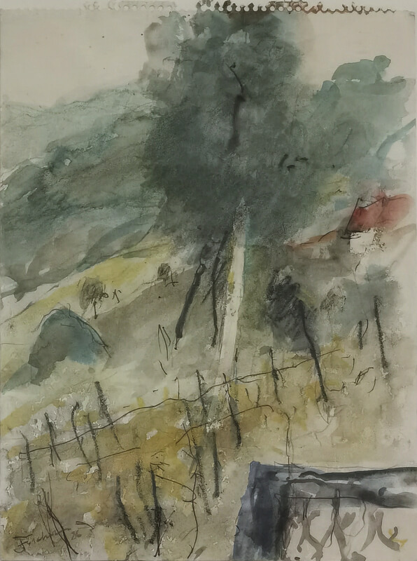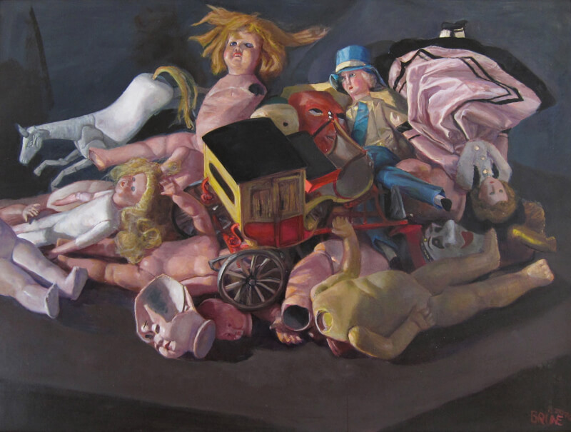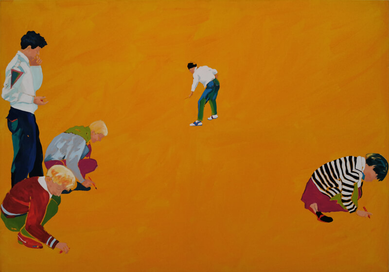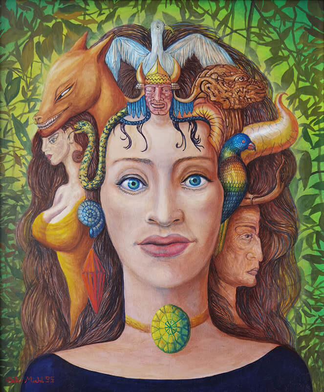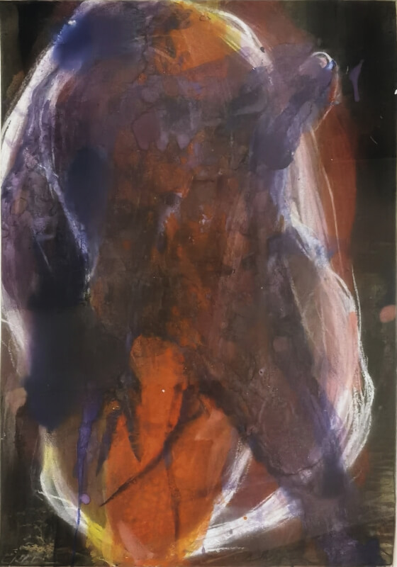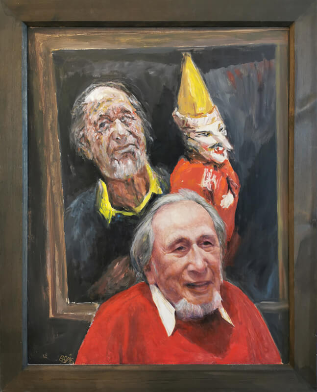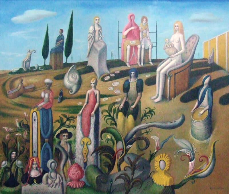 Glasobjekt | Leinwand in Holz mit Schutz aus Plexiglas mit 7 Fischen in glas eingebunden, Leinwand weiß und azur, Glas blau mit Rauch in opal Format: cm