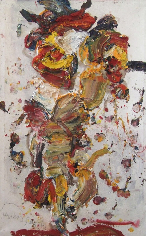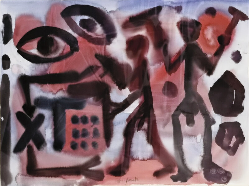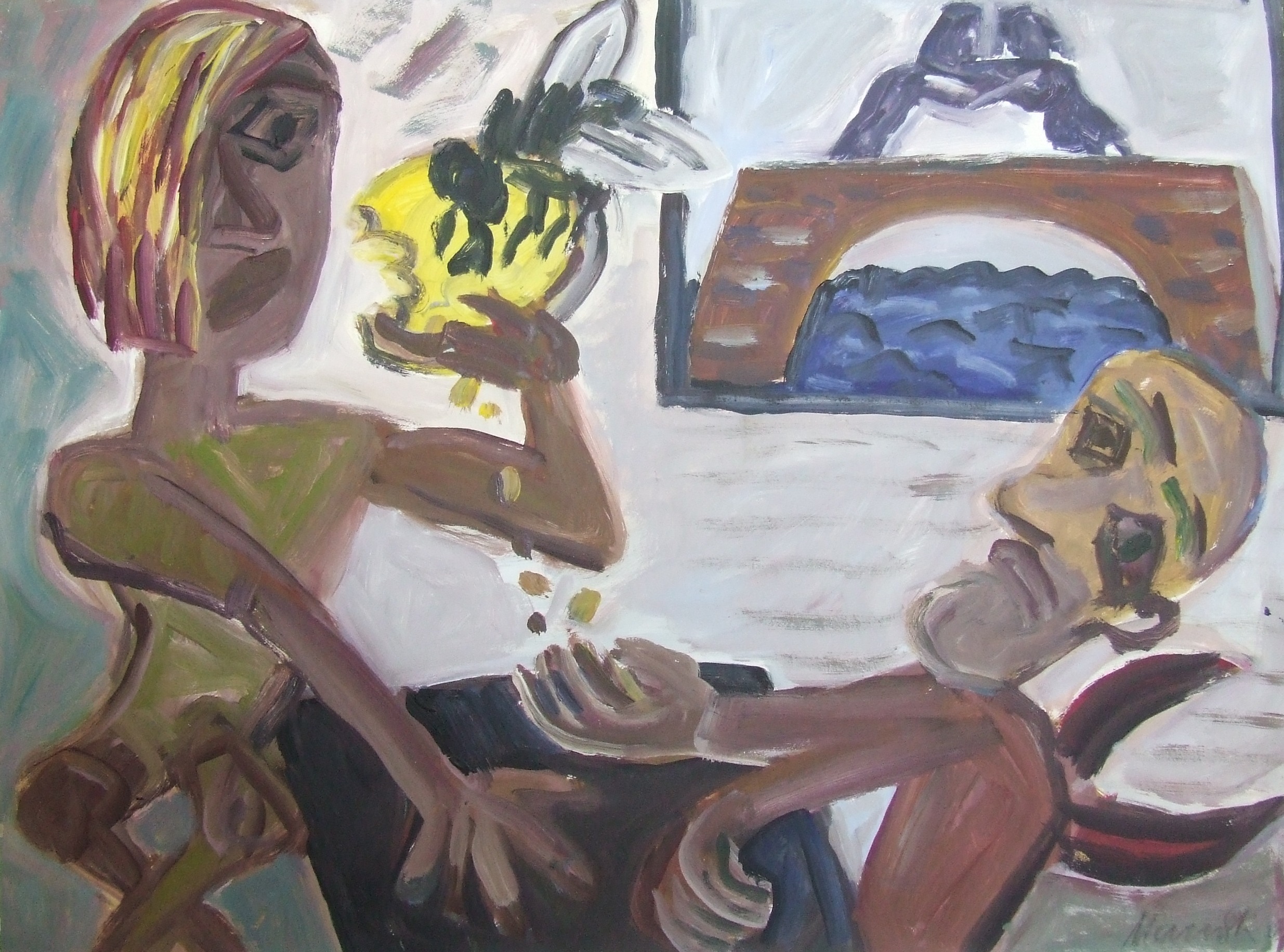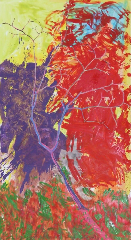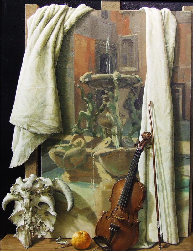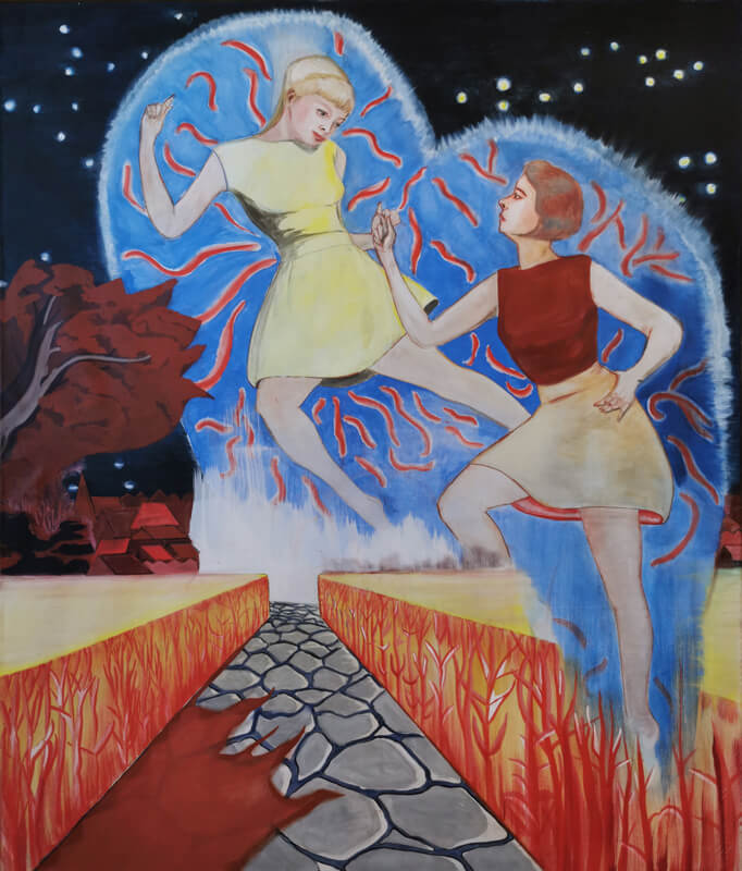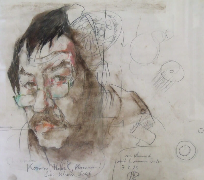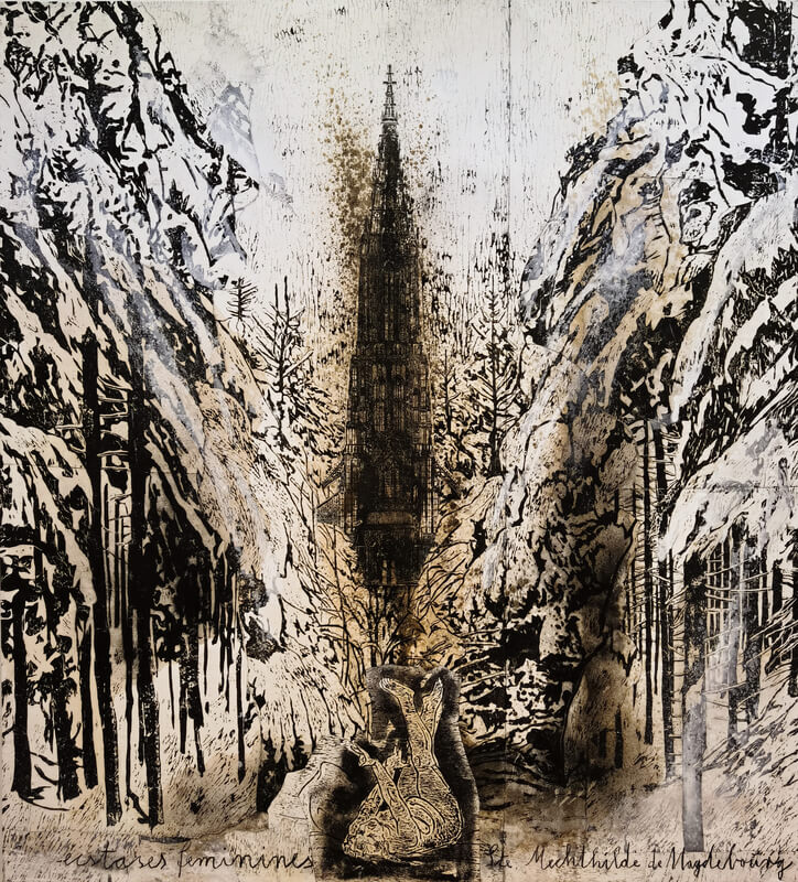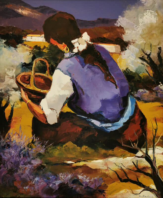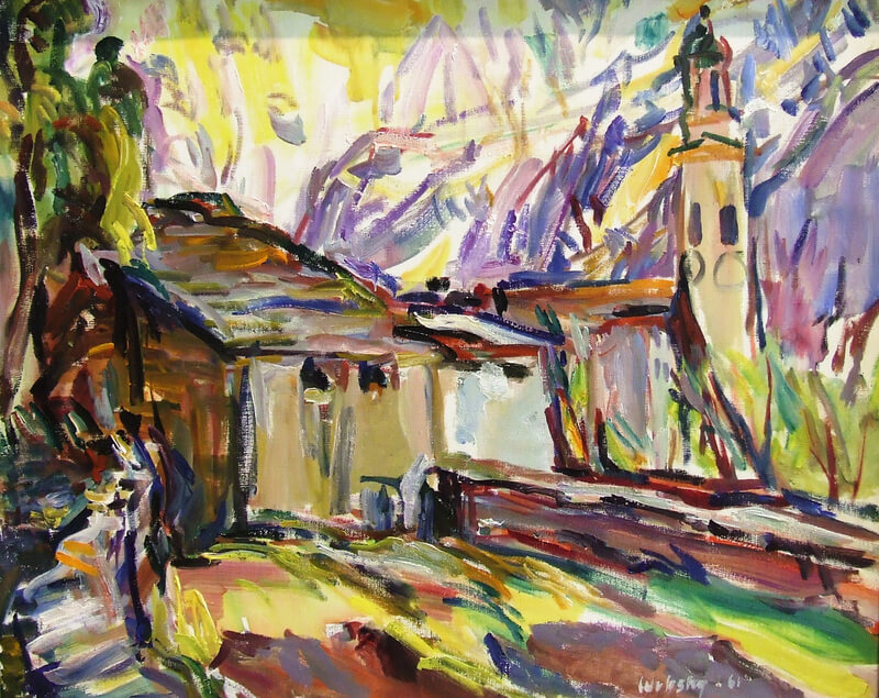 Glasobjekt | Leinwand in Holz mit Schutz aus Plexiglas mit 7 Fischen in glas eingebunden, Leinwand weiß und azur, Glas blau mit Rauch in opal Format: cm