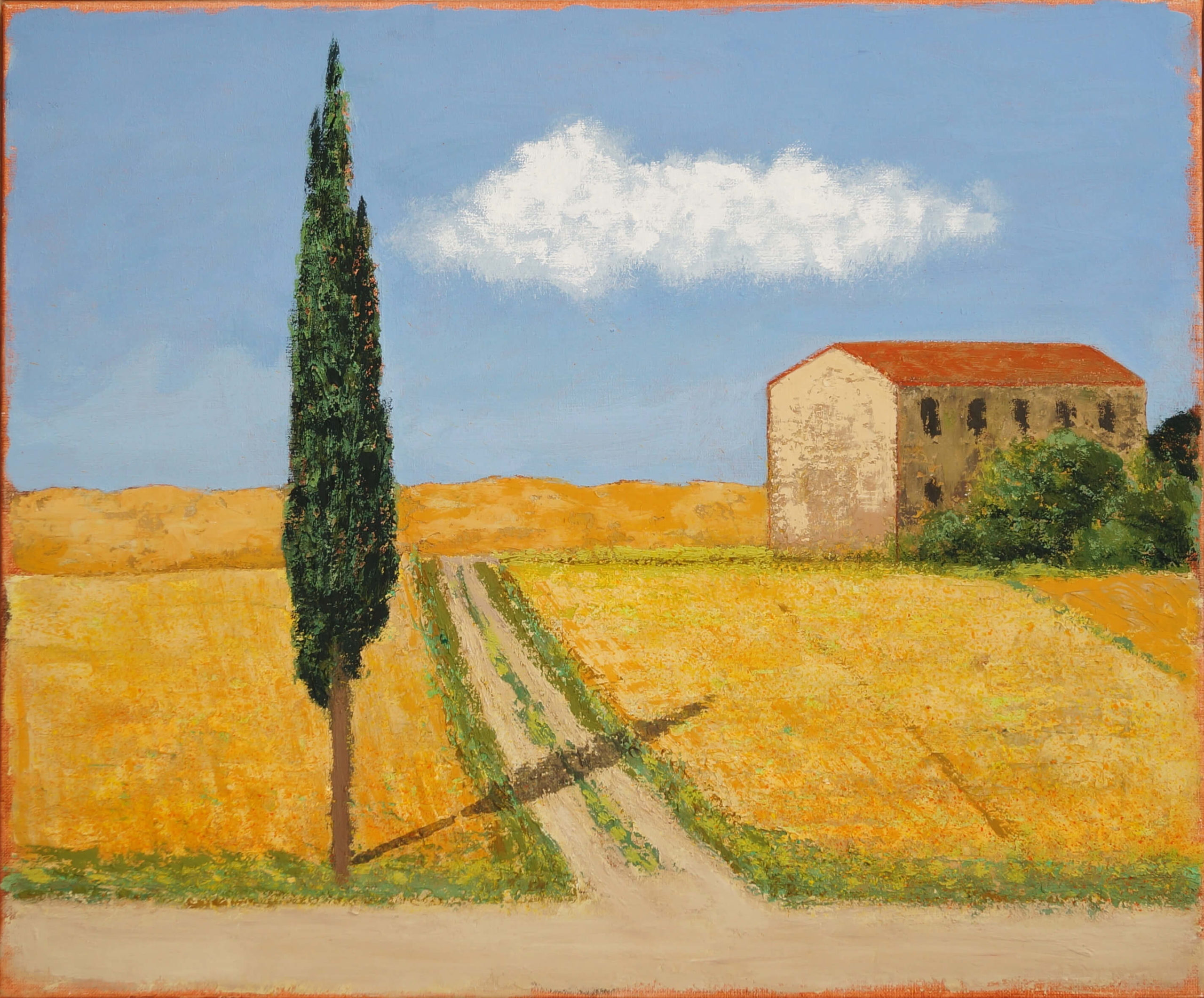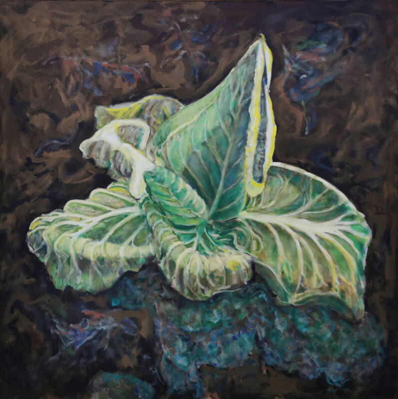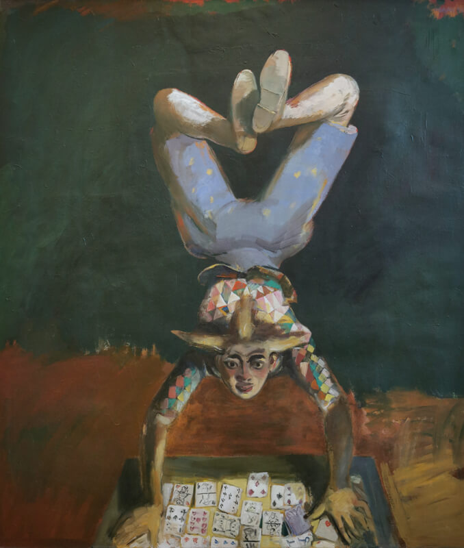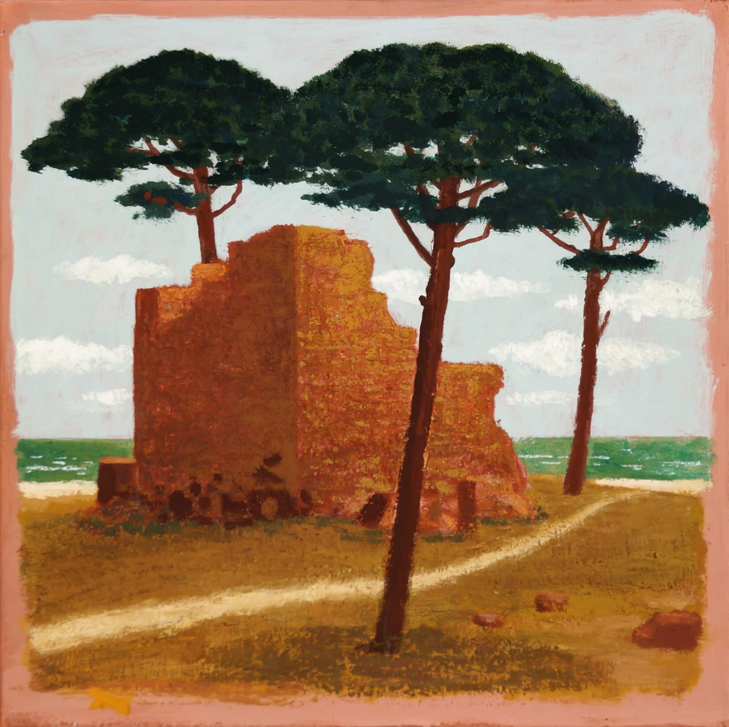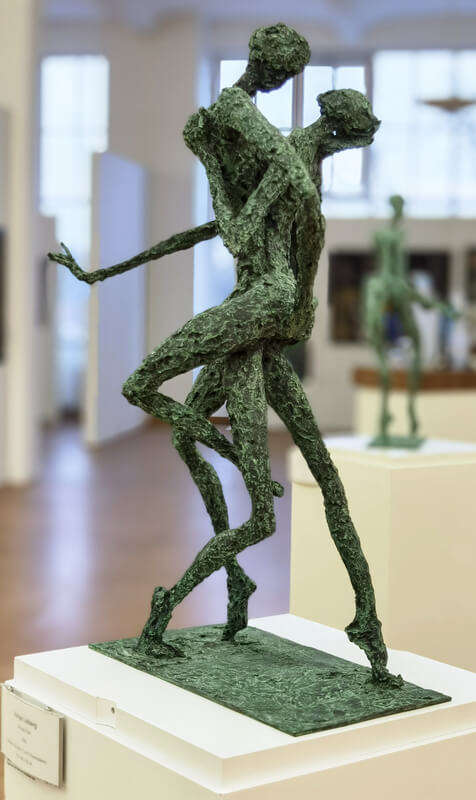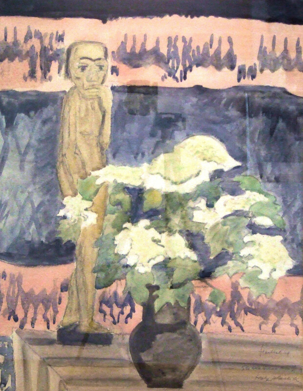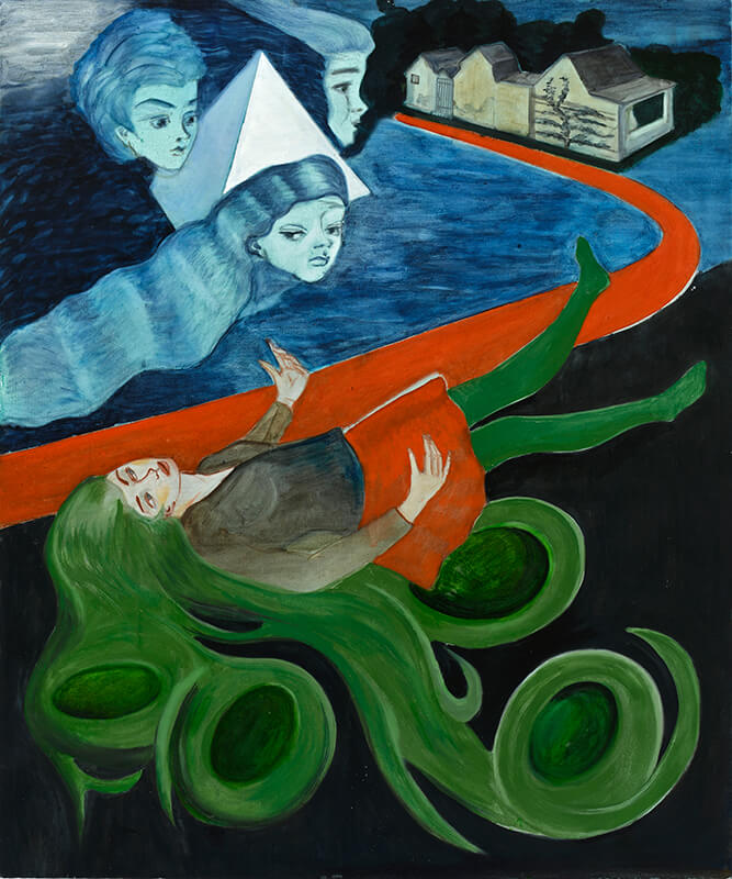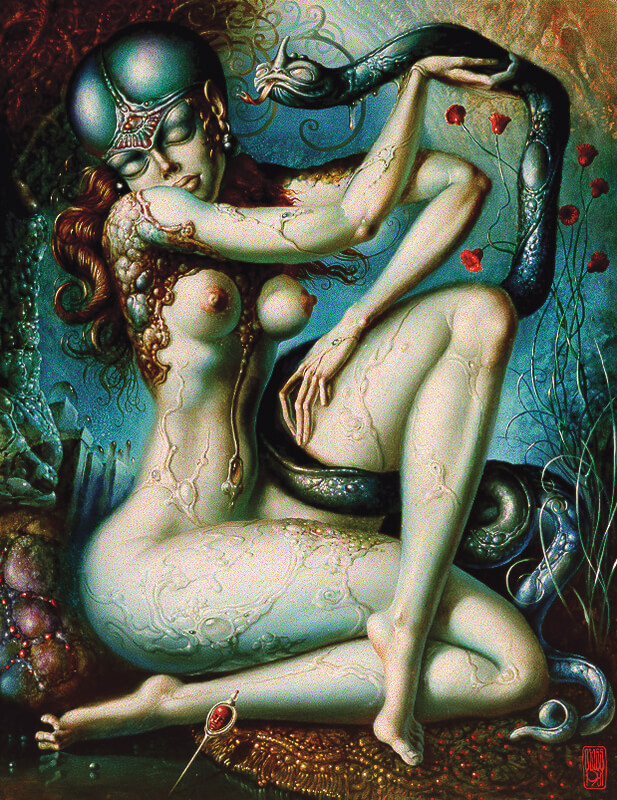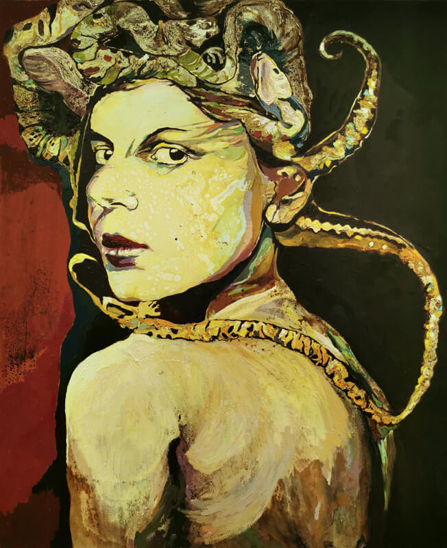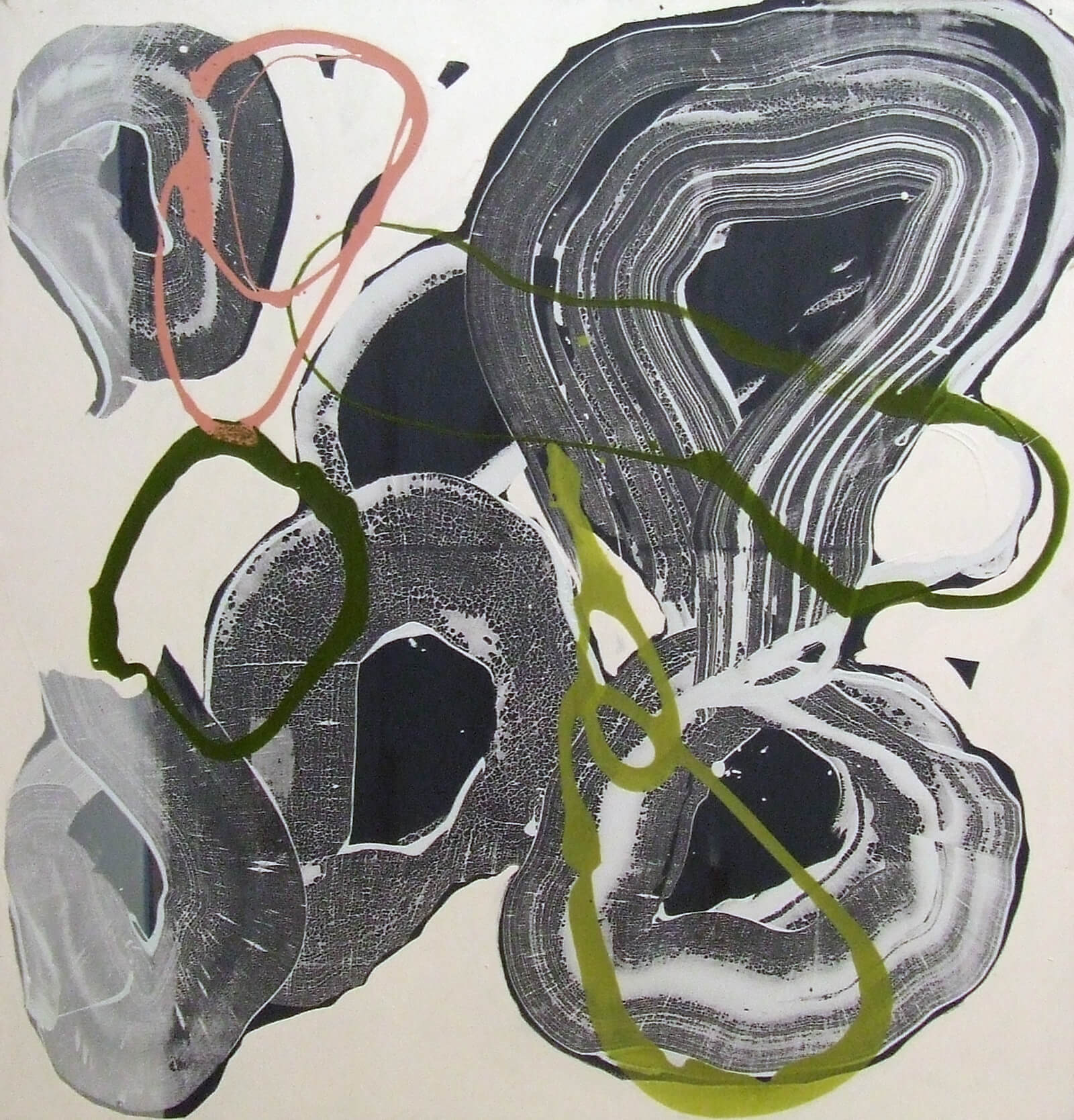 Glasobjekt | Leinwand in Holz mit Schutz aus Plexiglas mit 7 Fischen in glas eingebunden, Leinwand weiß und azur, Glas blau mit Rauch in opal Format: cm
