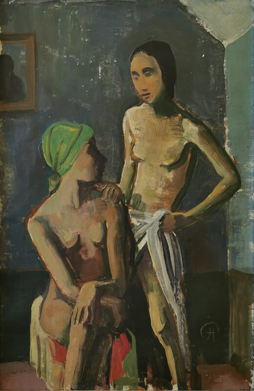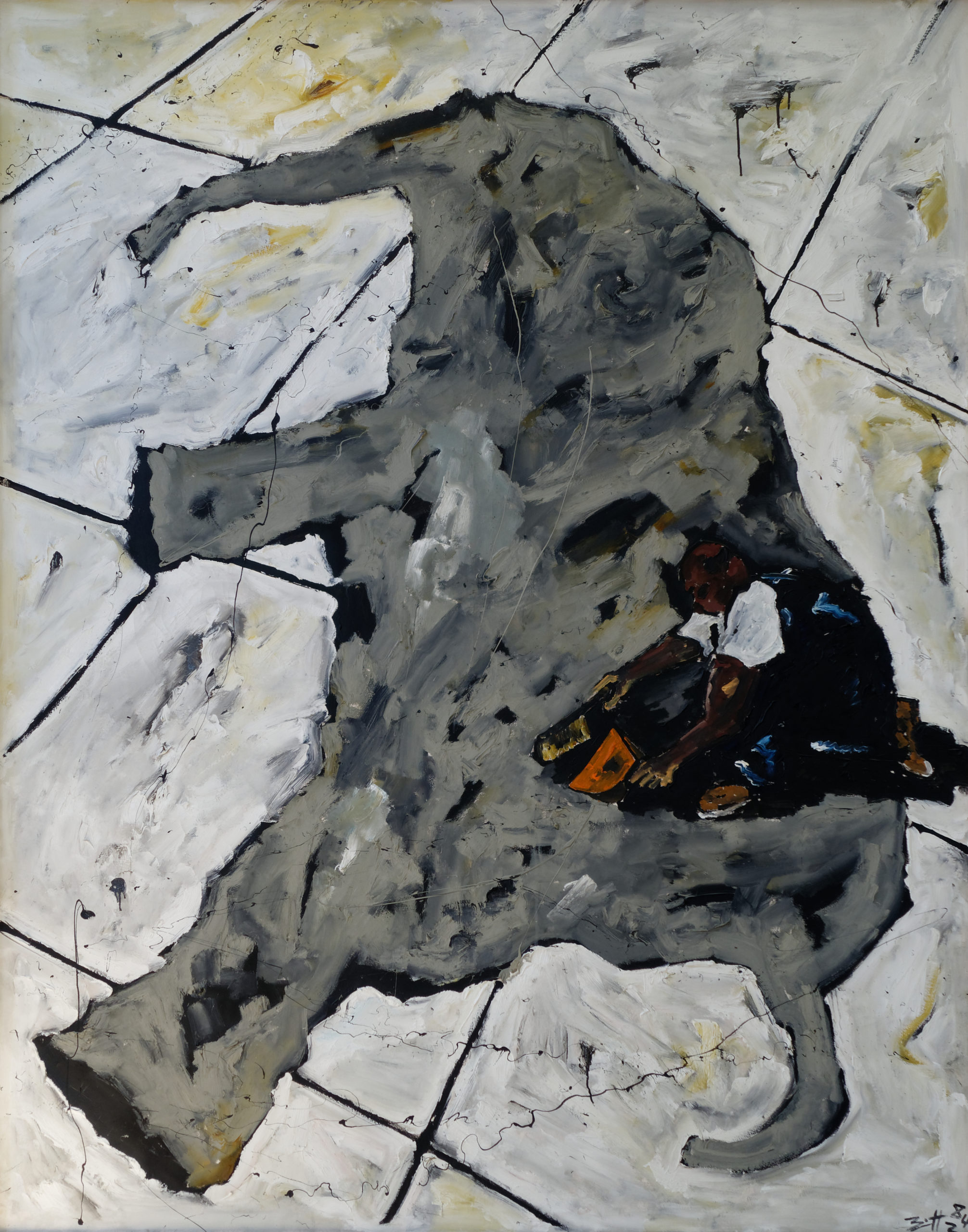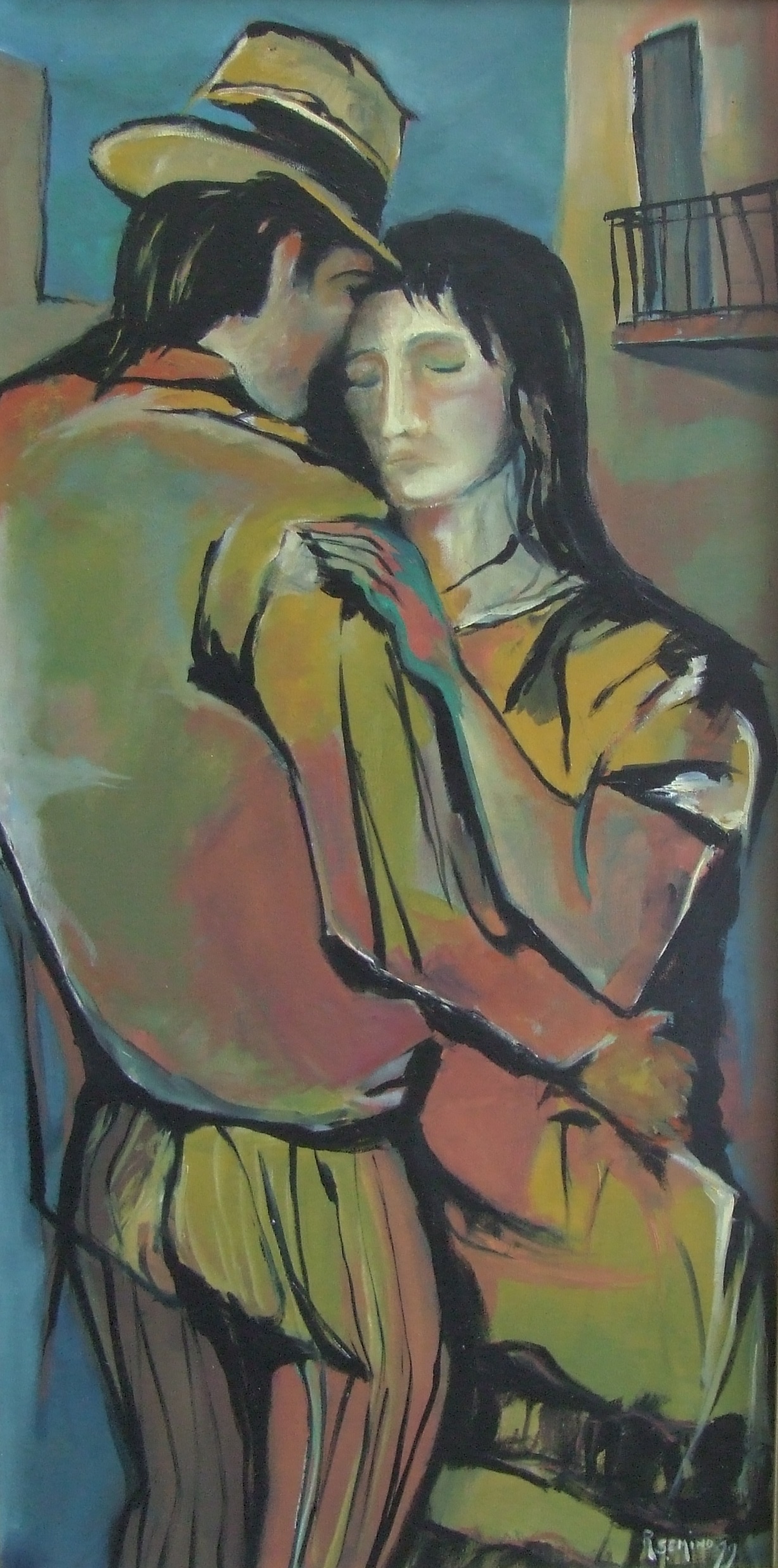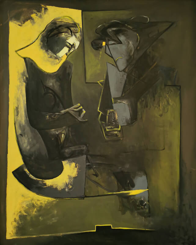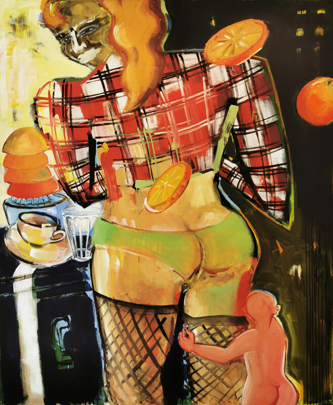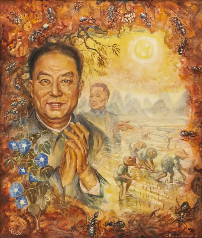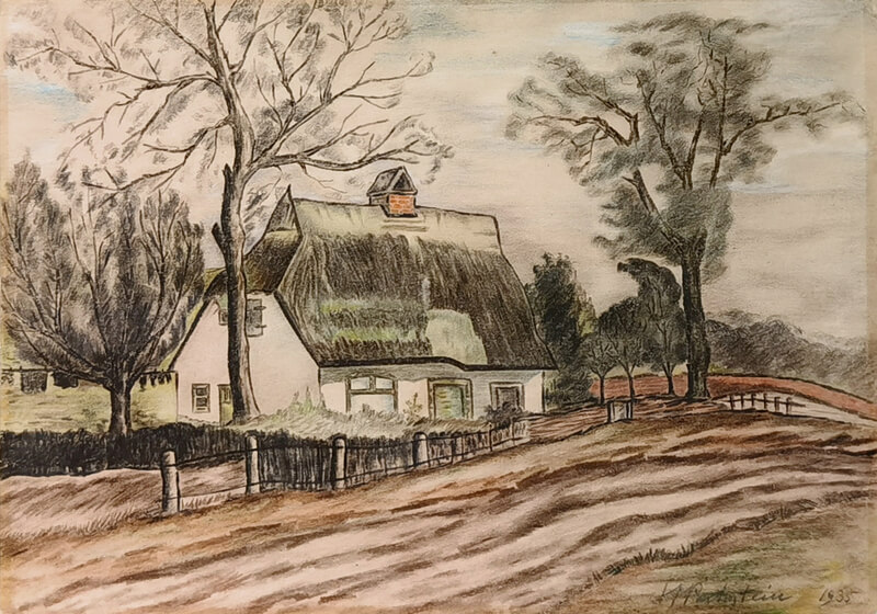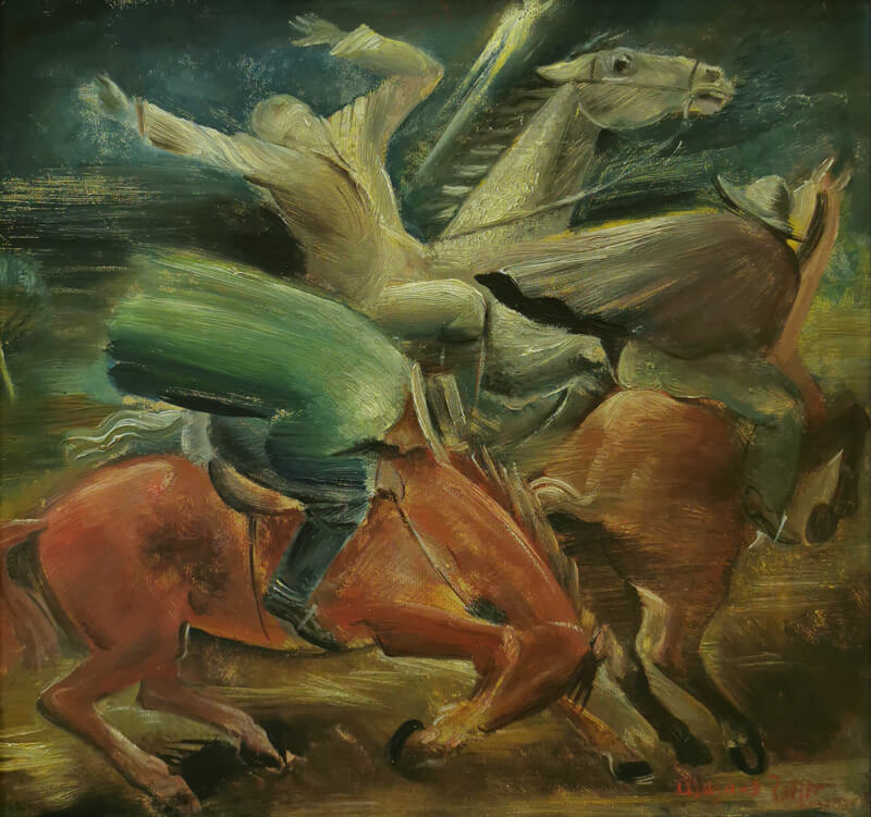 Glasobjekt | Leinwand in Holz mit Schutz aus Plexiglas mit 7 Fischen in glas eingebunden, Leinwand weiß und azur, Glas blau mit Rauch in opal Format: cm