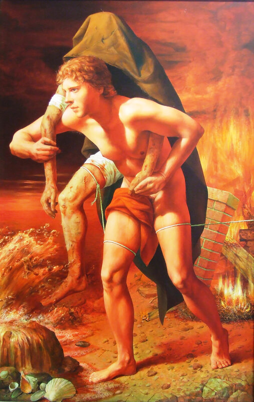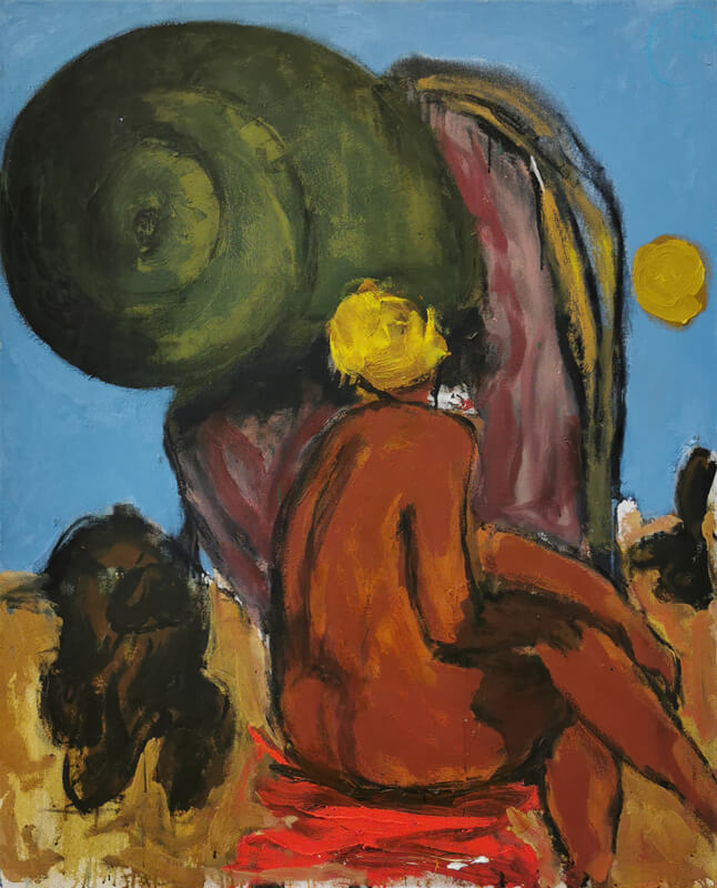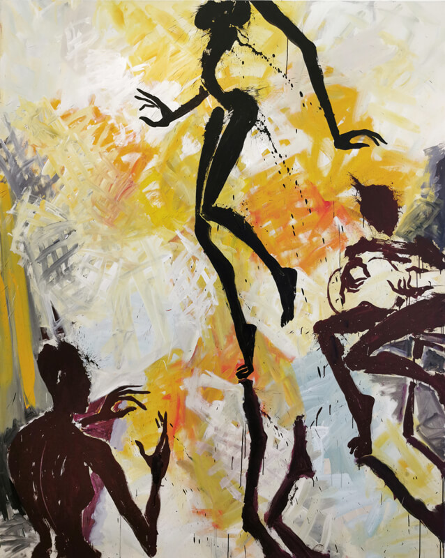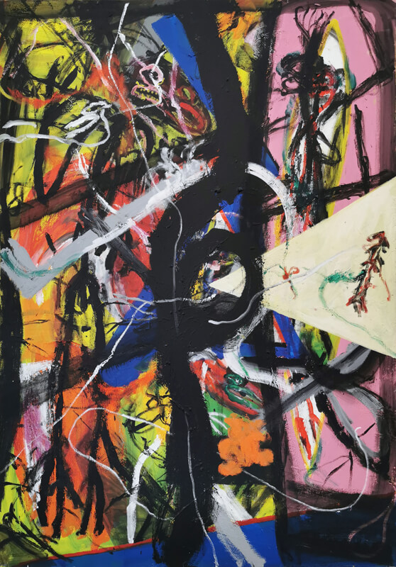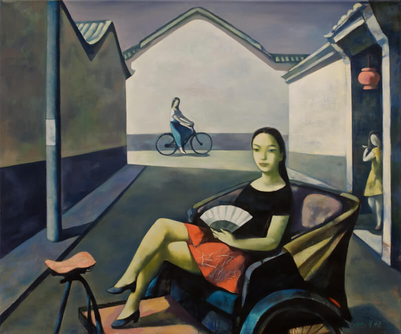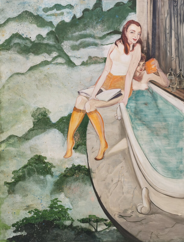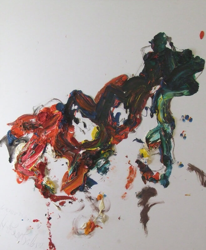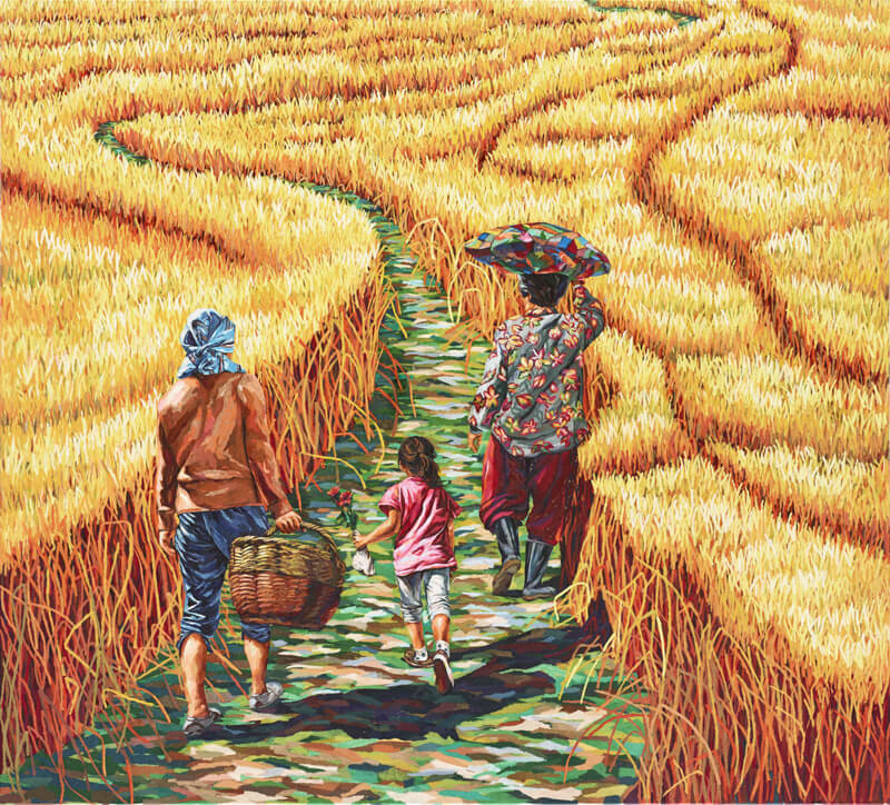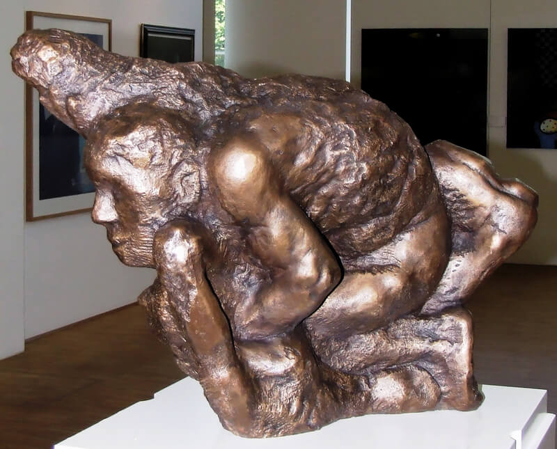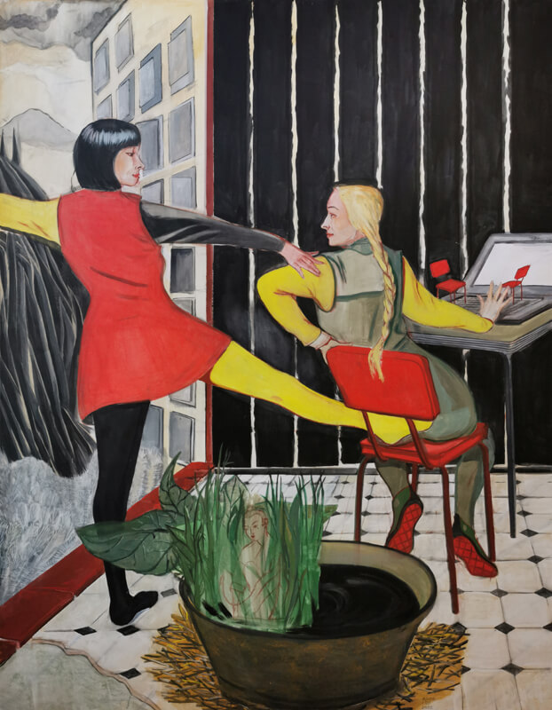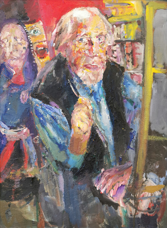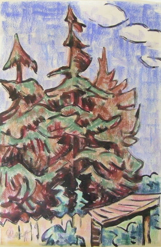 Glasobjekt | Leinwand in Holz mit Schutz aus Plexiglas mit 7 Fischen in glas eingebunden, Leinwand weiß und azur, Glas blau mit Rauch in opal Format: cm