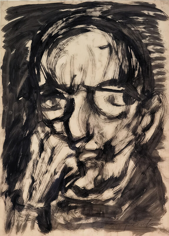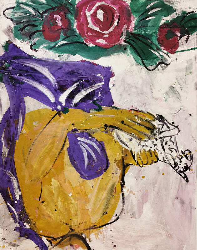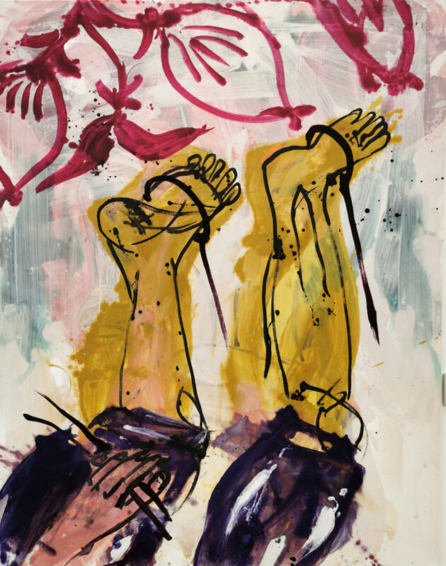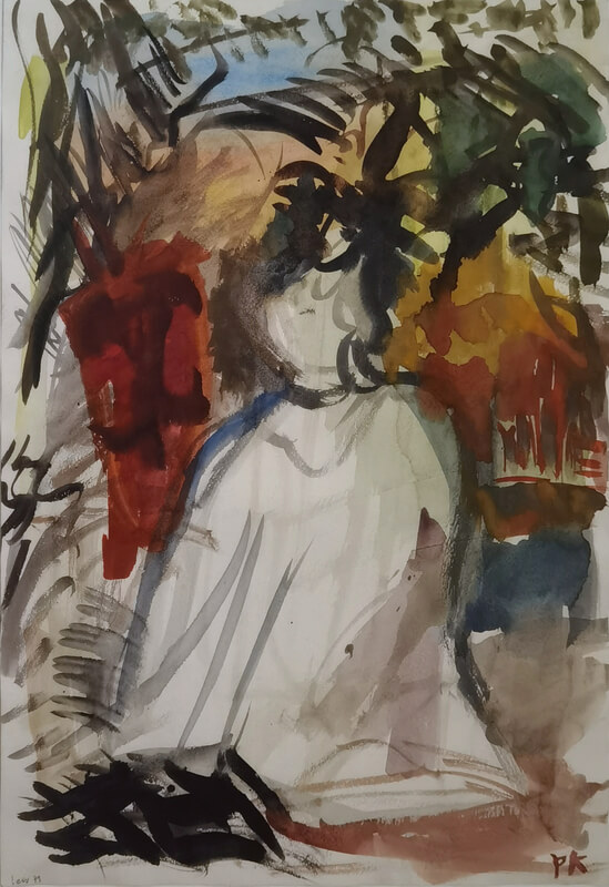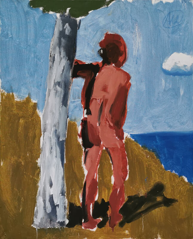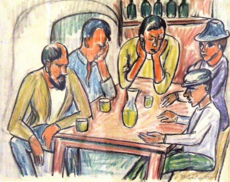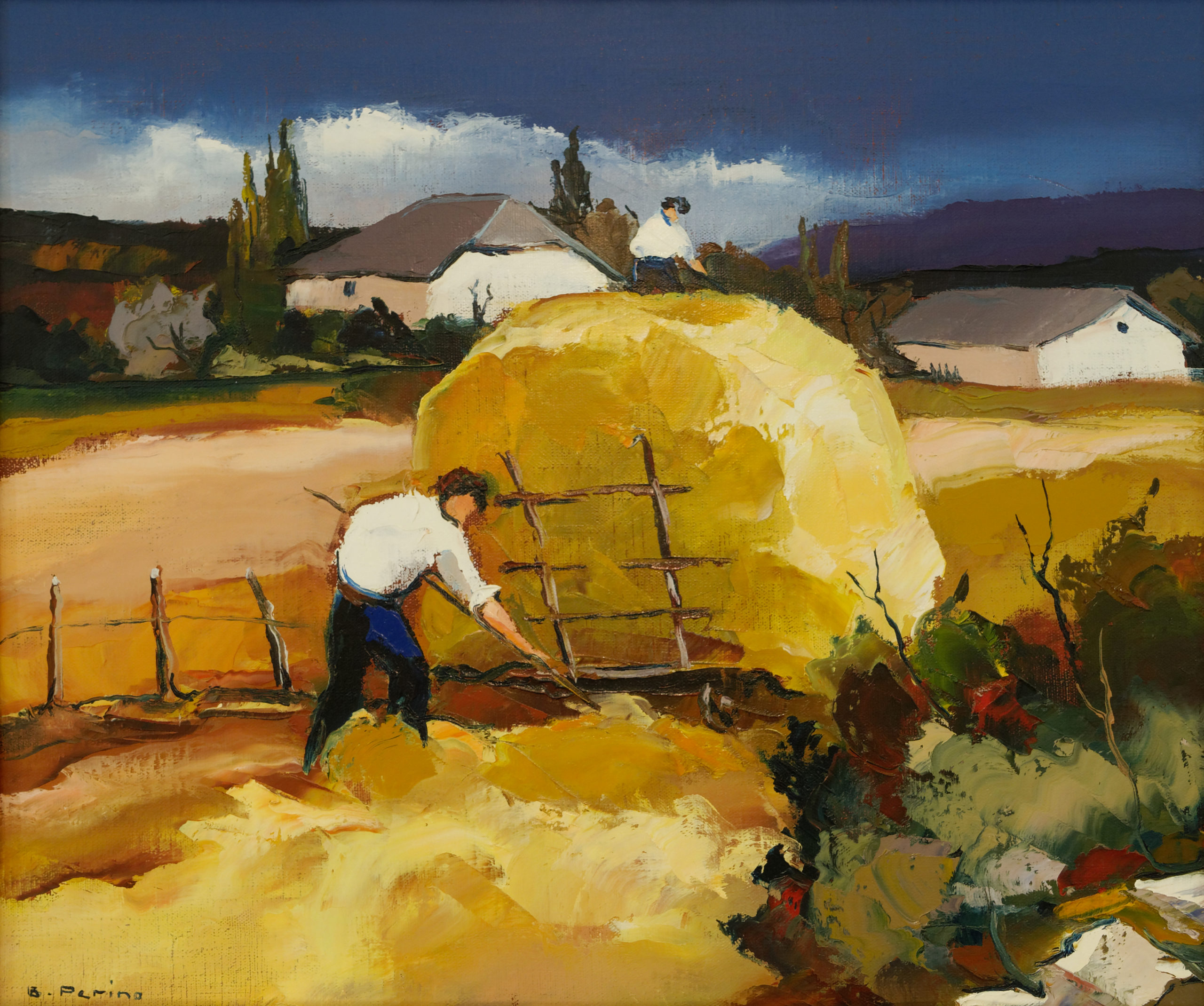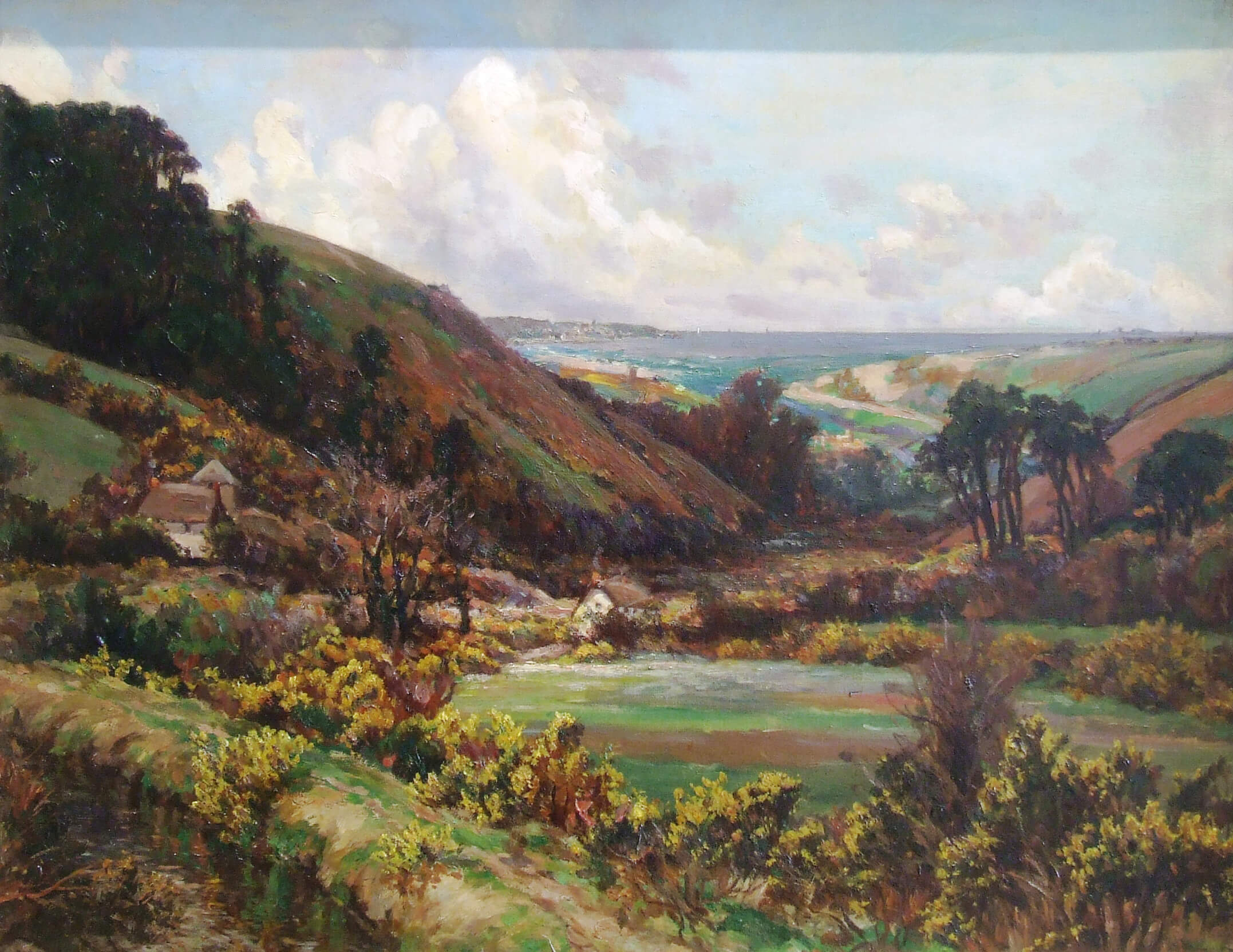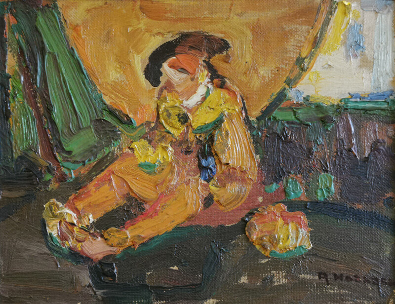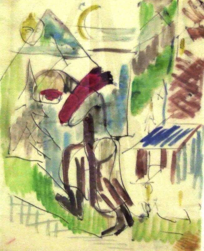 Glasobjekt | Leinwand in Holz mit Schutz aus Plexiglas mit 7 Fischen in glas eingebunden, Leinwand weiß und azur, Glas blau mit Rauch in opal Format: cm