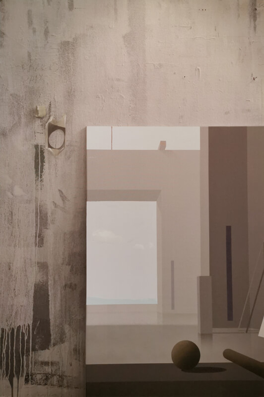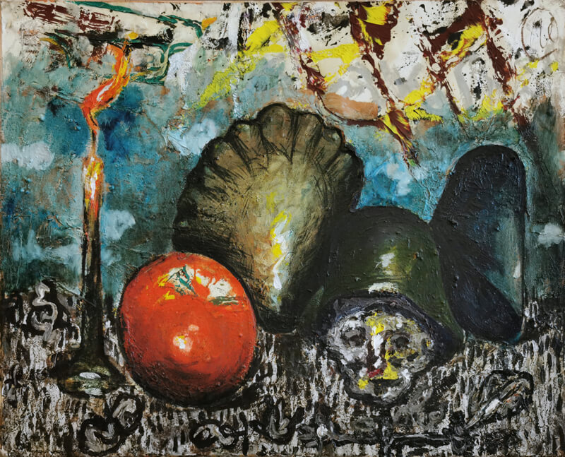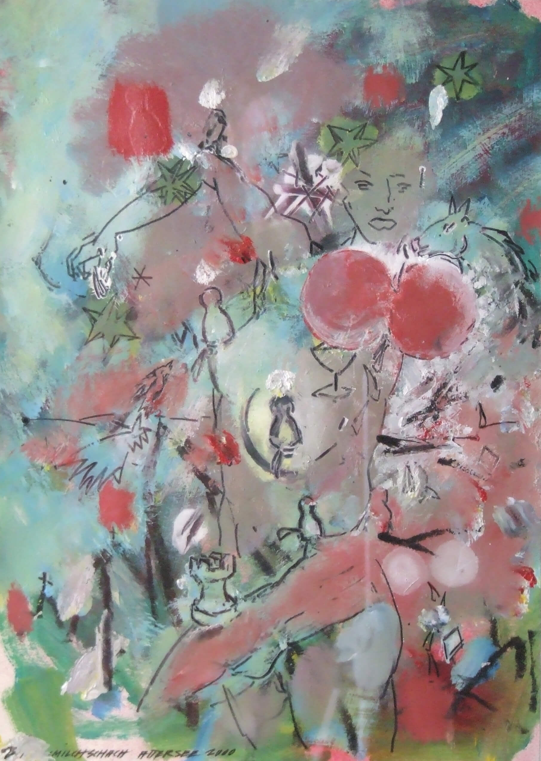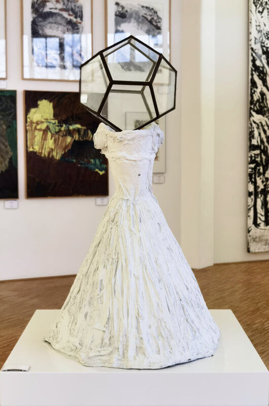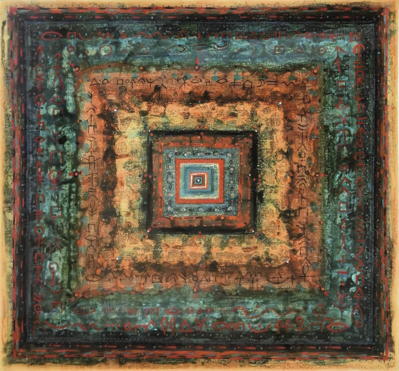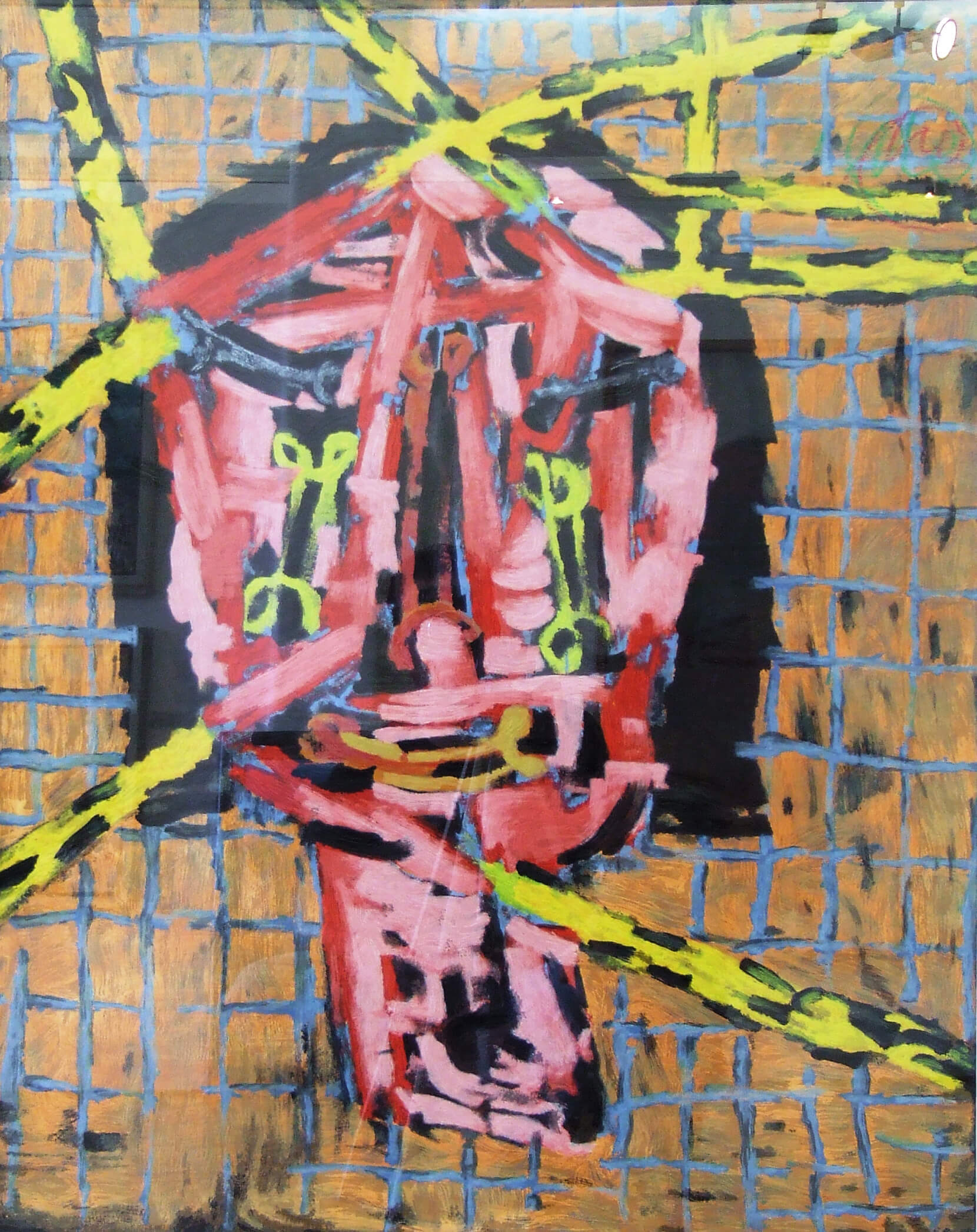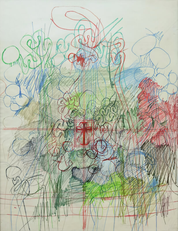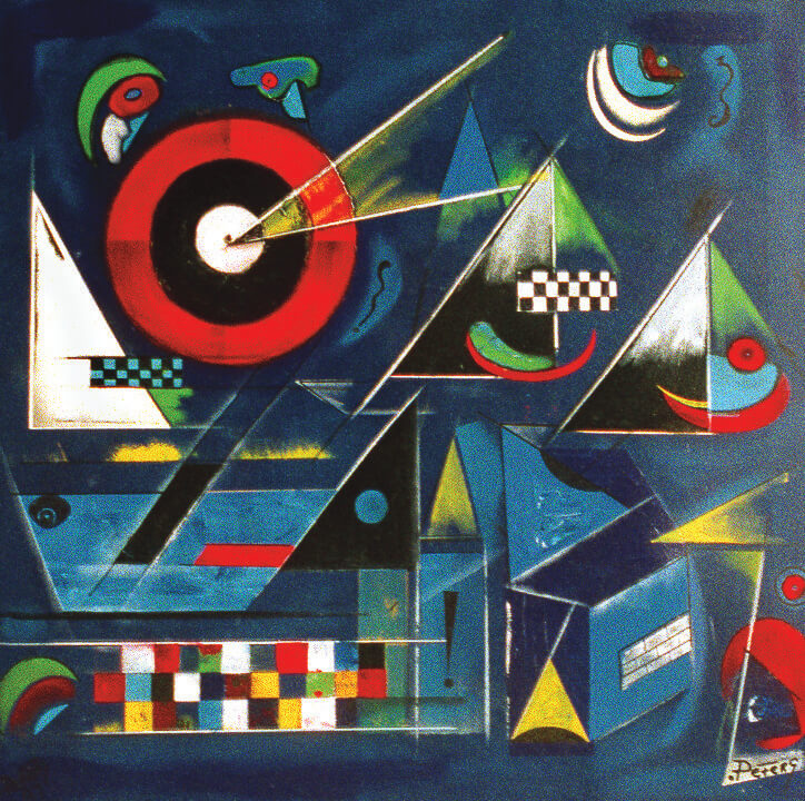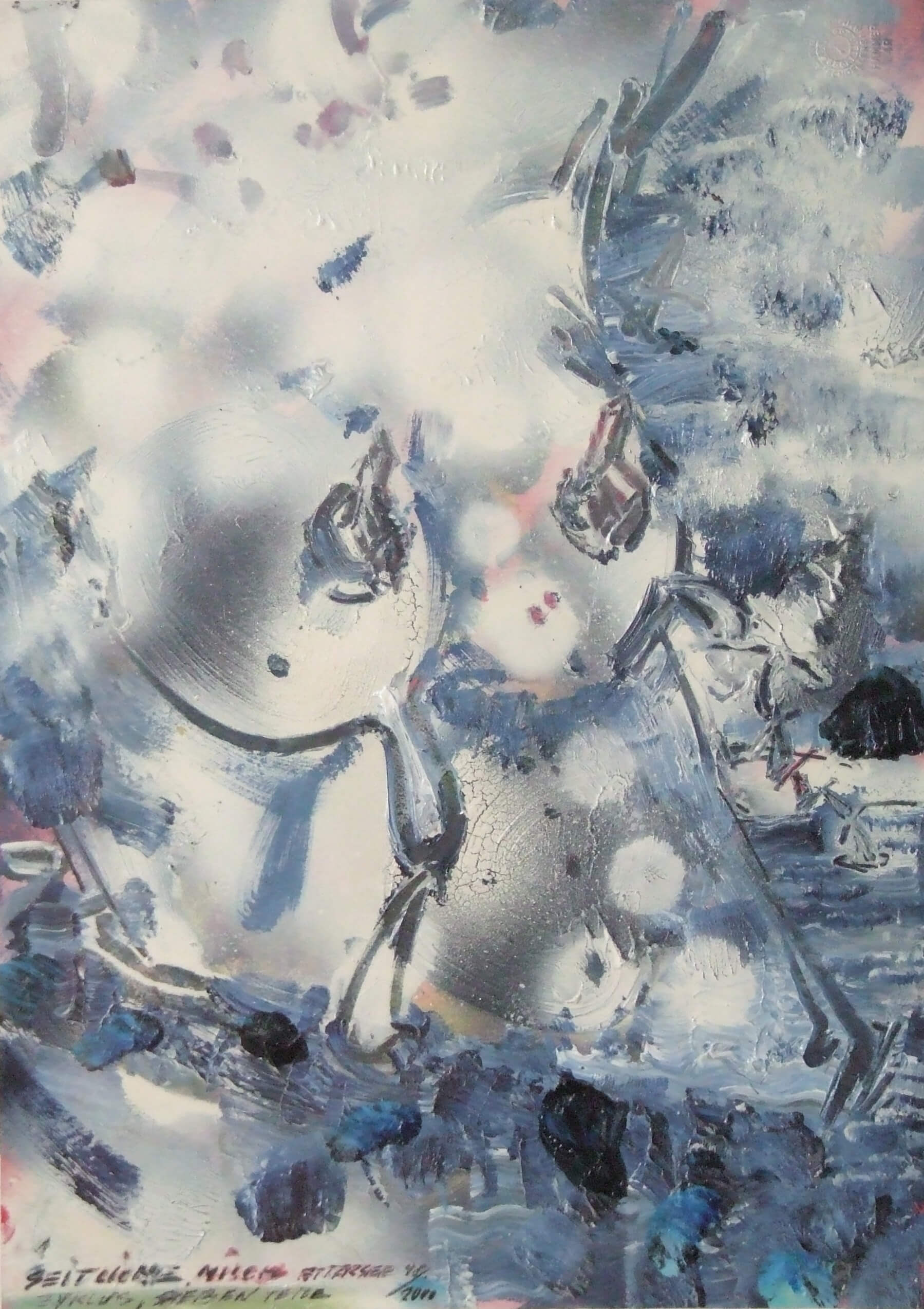 Glasobjekt | Leinwand rechtwinklig in Eisen (silber) mit einer Reihe Öffnungen, um das Licht durchzulassen + 11 Kugeln aus verschiedenen Maßen und 3 Becher mit verschiedenen Maßen, rot, aquamarin Format: cm