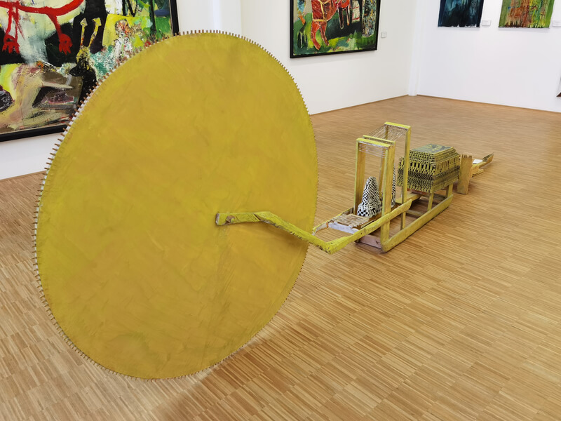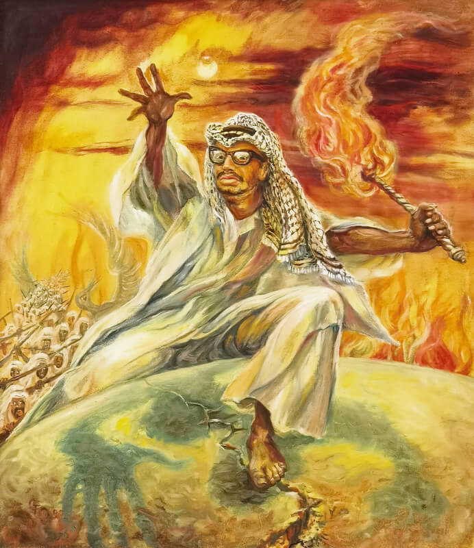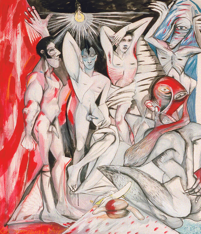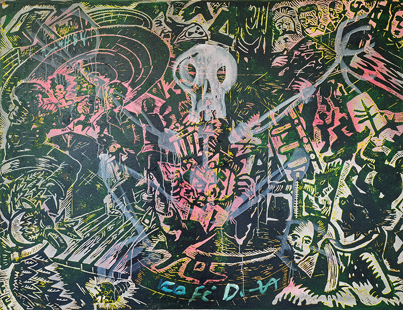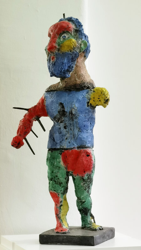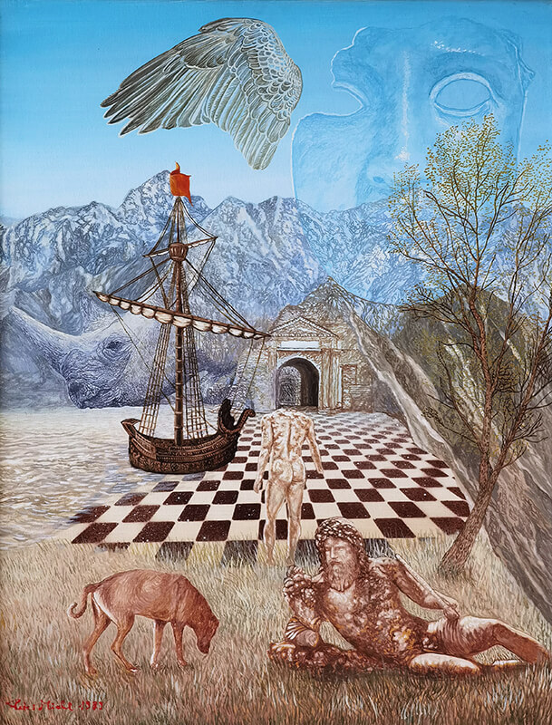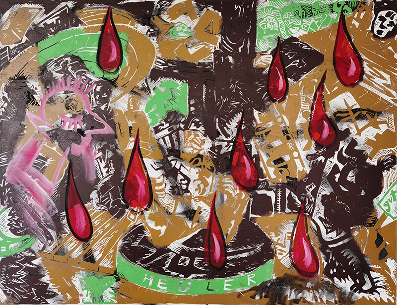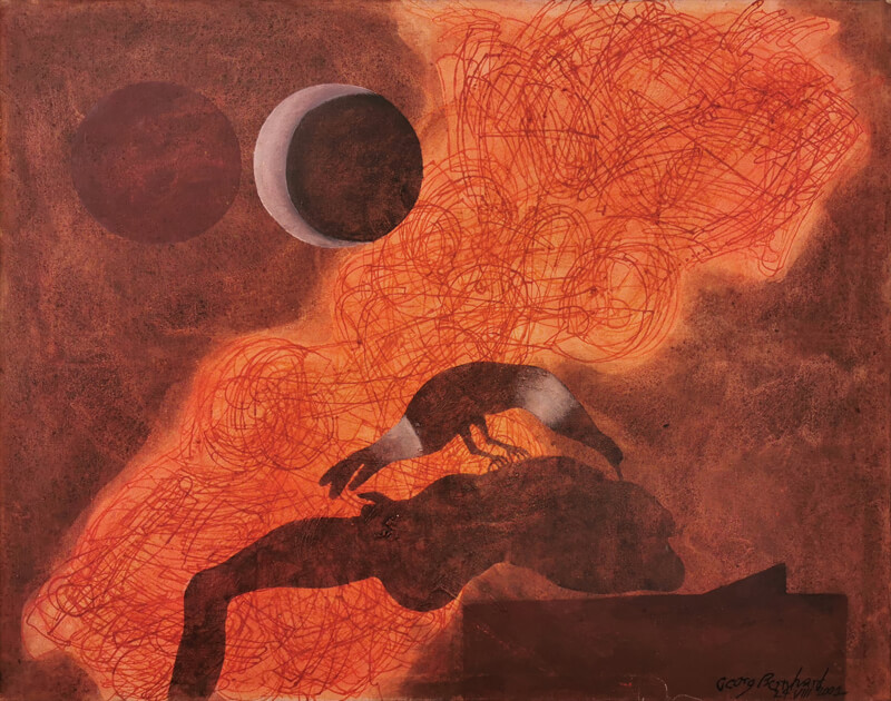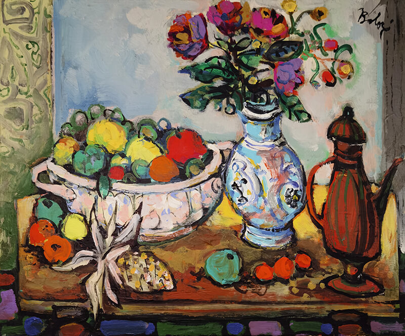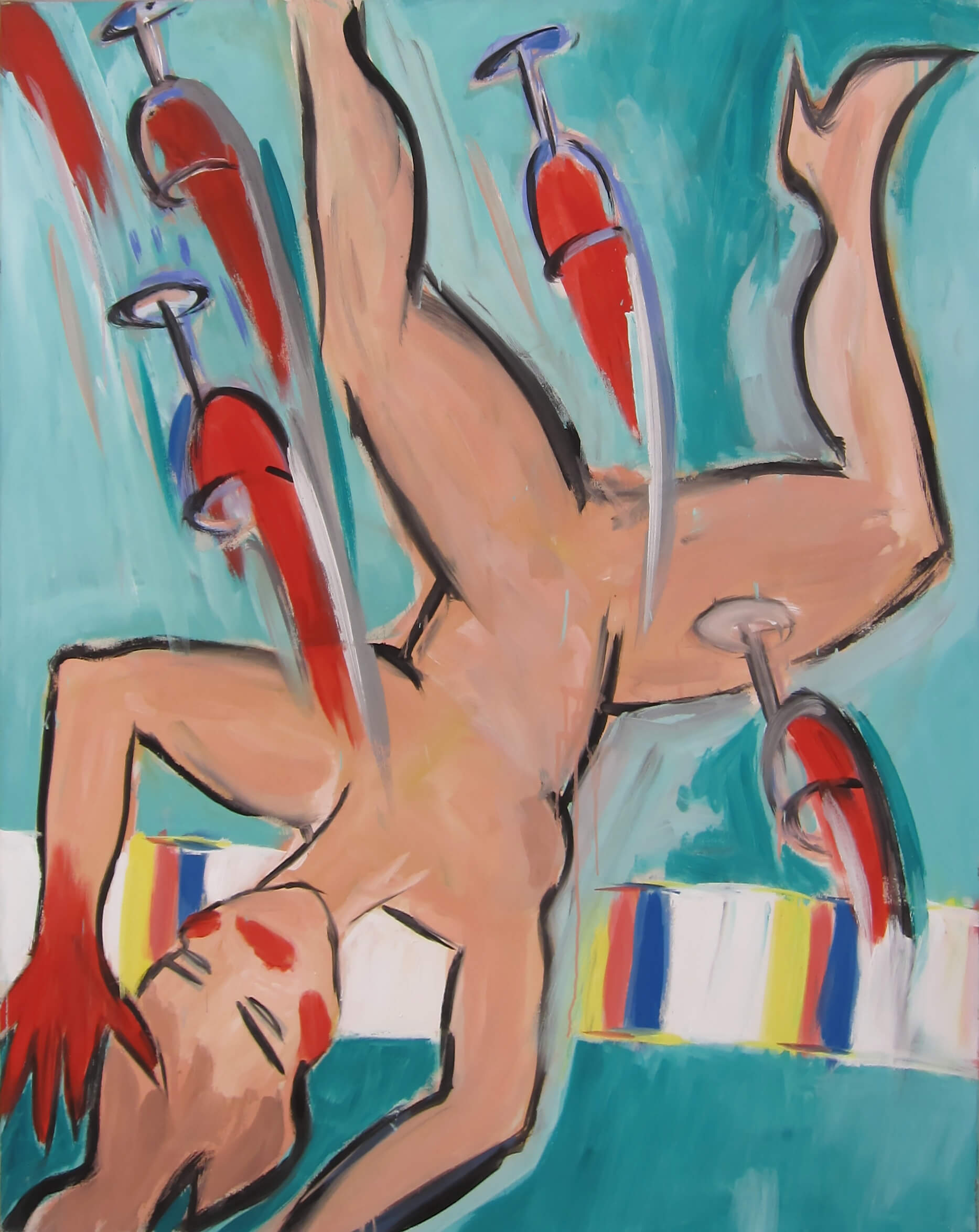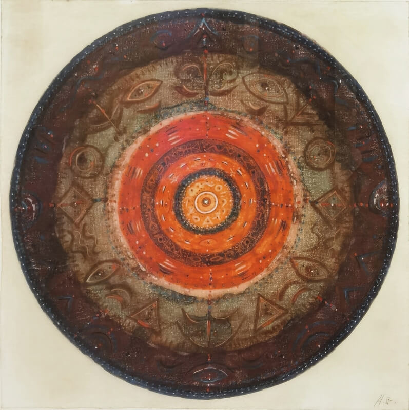 Glasobjekt | Leinwand rechtwinklig in Eisen (silber) mit einer Reihe Öffnungen, um das Licht durchzulassen + 11 Kugeln aus verschiedenen Maßen und 3 Becher mit verschiedenen Maßen, rot, aquamarin Format: cm
