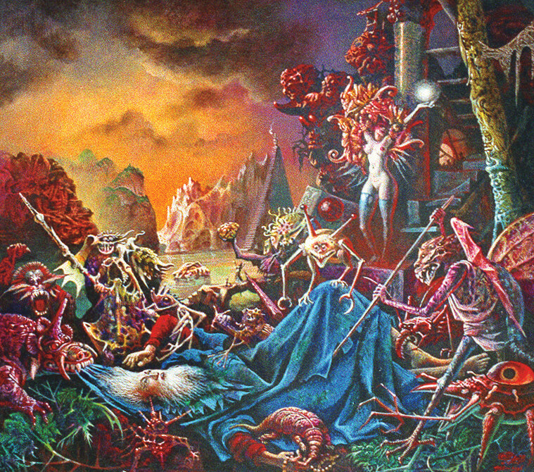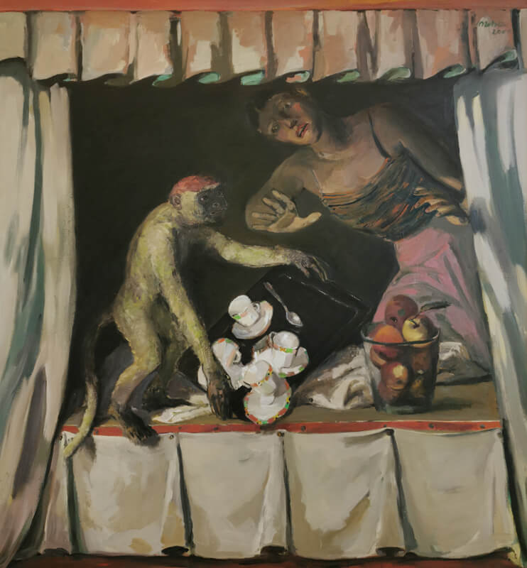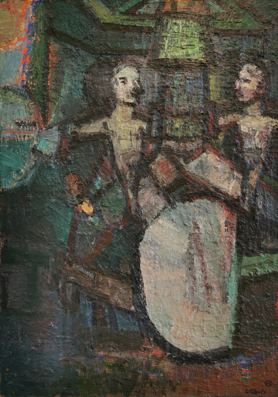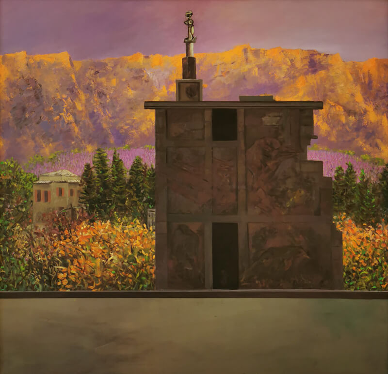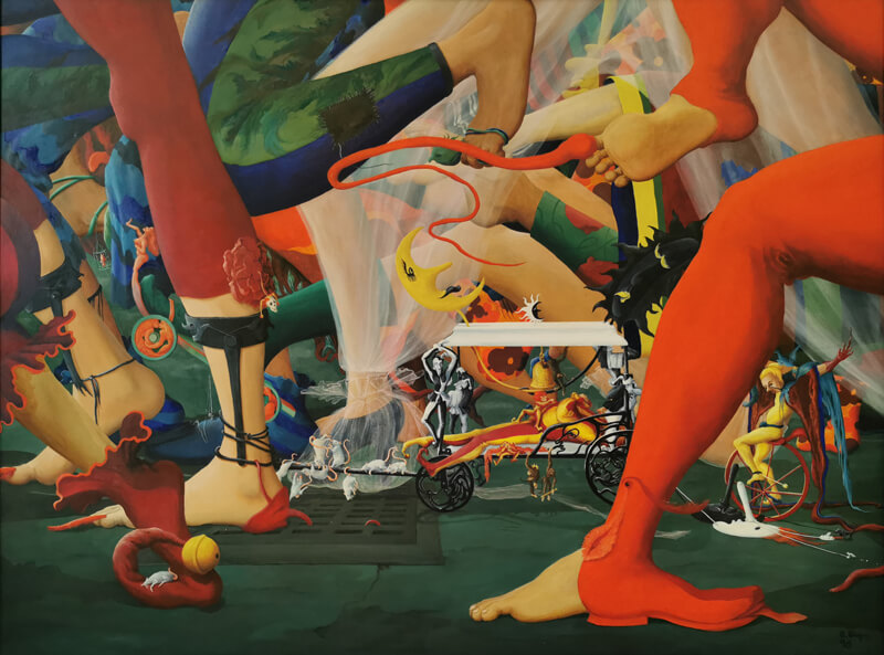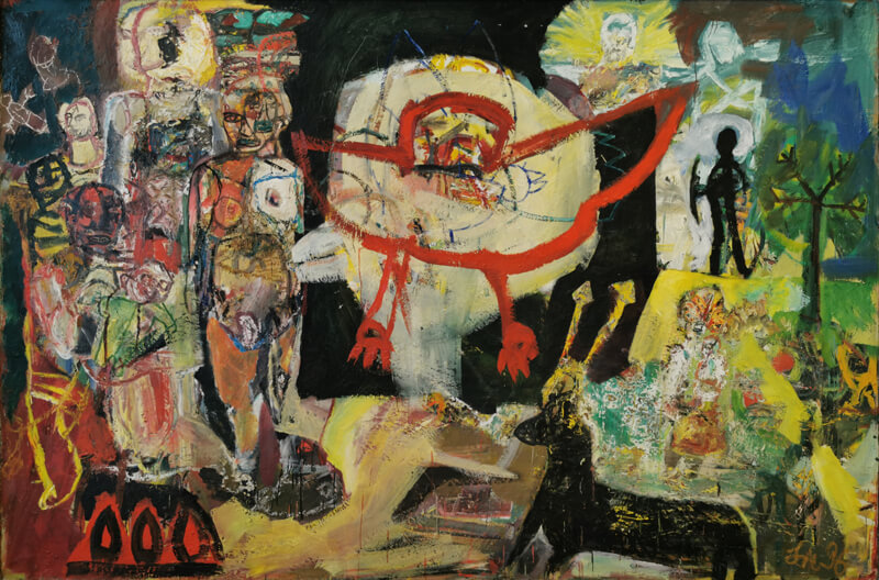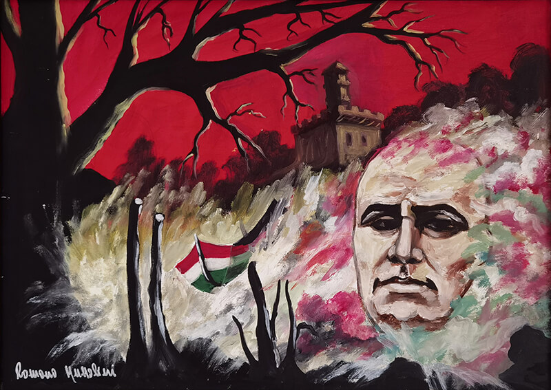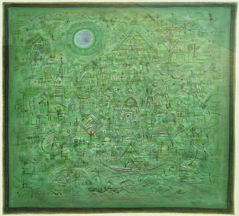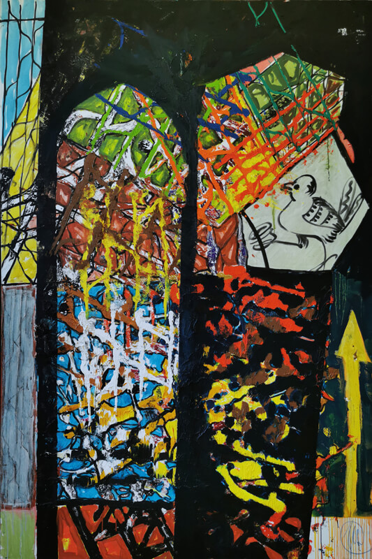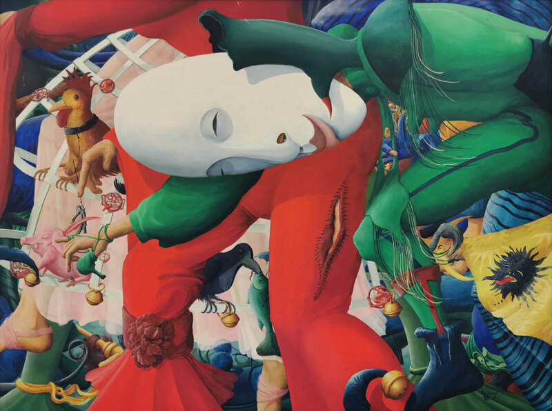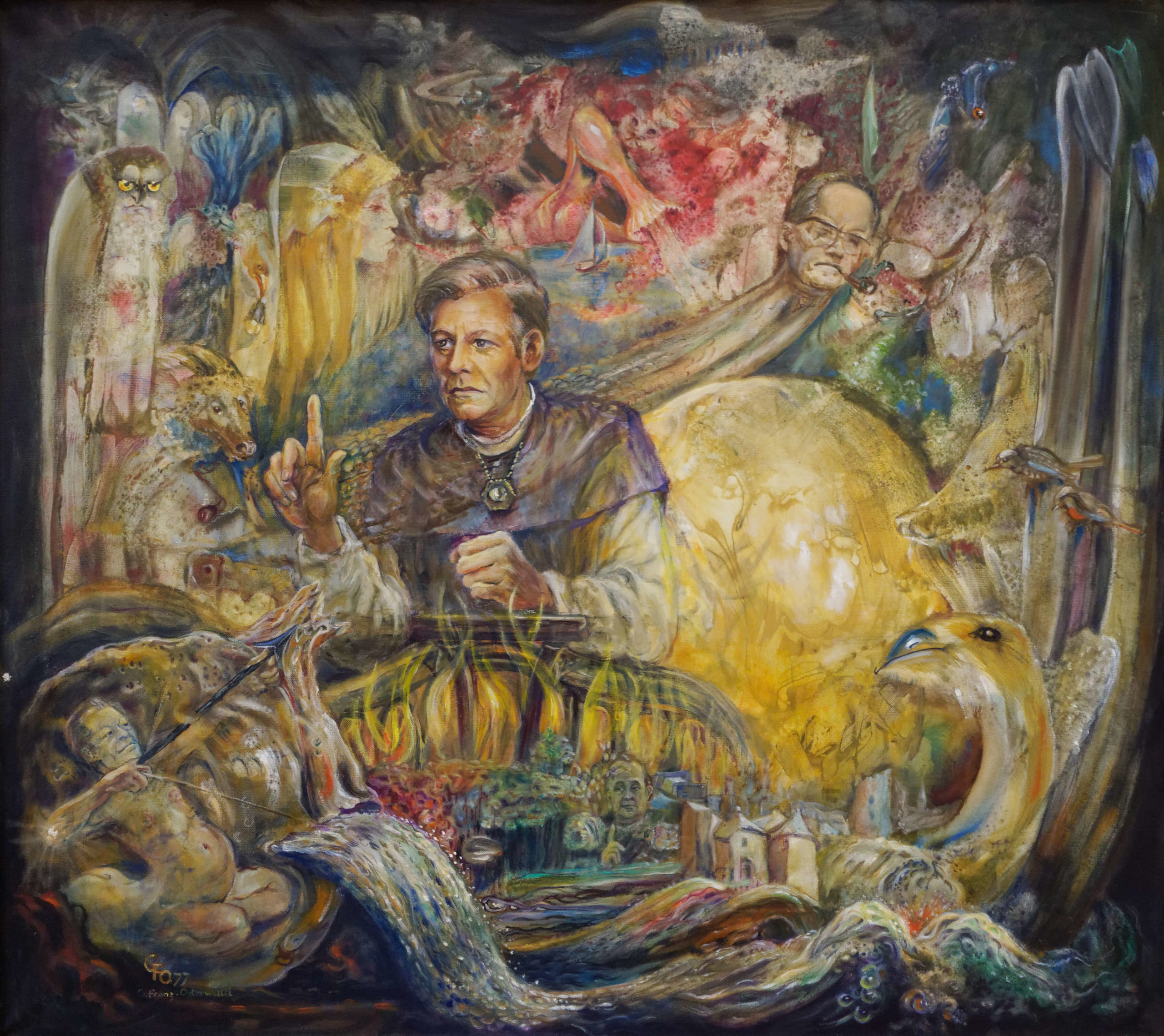 Glasobjekt | Leinwand rechtwinklig in Eisen (silber) mit einer Reihe Öffnungen, um das Licht durchzulassen + 11 Kugeln aus verschiedenen Maßen und 3 Becher mit verschiedenen Maßen, rot, aquamarin Format: cm